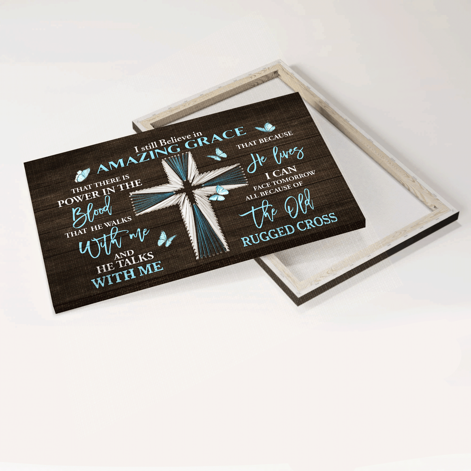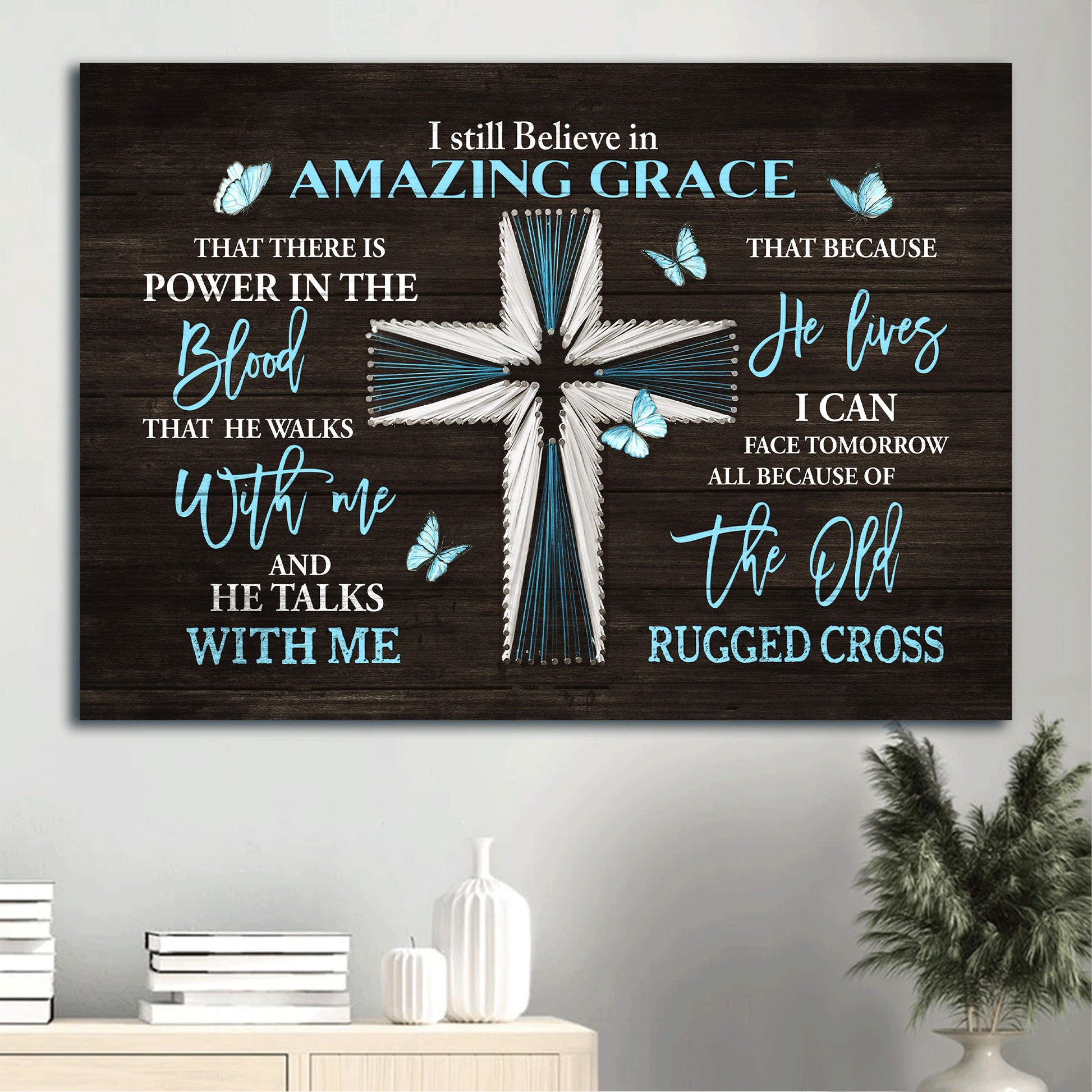 Jesus Landscape Canvas- Blue Cross, Blue butterfly canvas- Gift for Christian- I still believe in amazing grace - Landscape Canvas Prints, Christian Wall Art