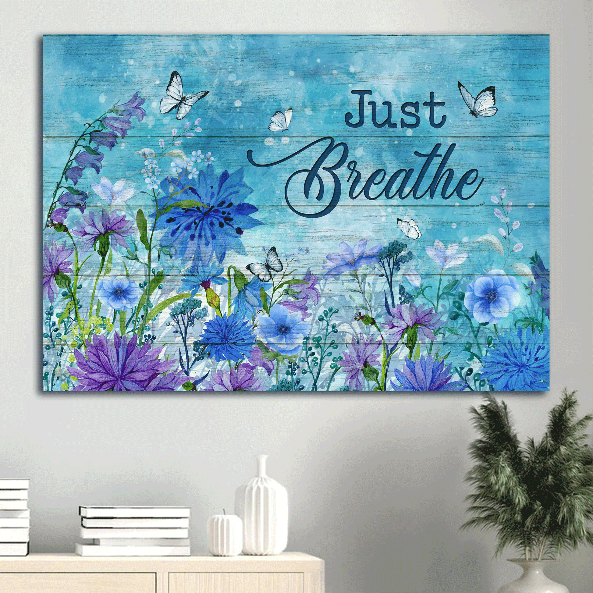 Blue flower garden, Pretty butterfly, Spring painting, Just breathe - Jesus Landscape Canvas Prints, Christian Wall Art is a wonderful picture which can be hung in any room in your house such as living room, bedroom, kitchen or even outdoor space.