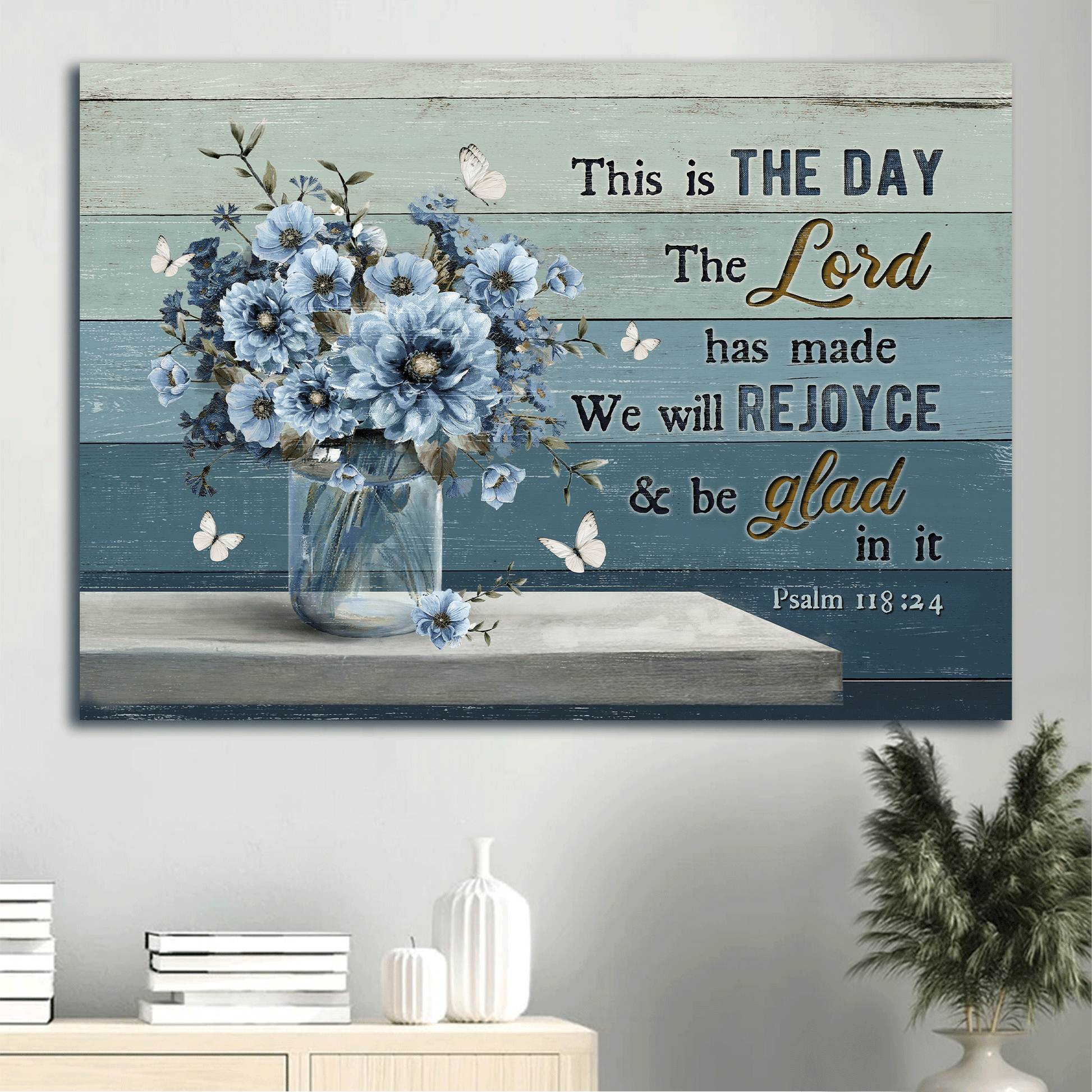 Jesus Landscape Canvas - Blue flower, Vintage painting, Bible verse Landscape Canvas - Gift For Christian - This is the day the Lord has made Landscape Canvas