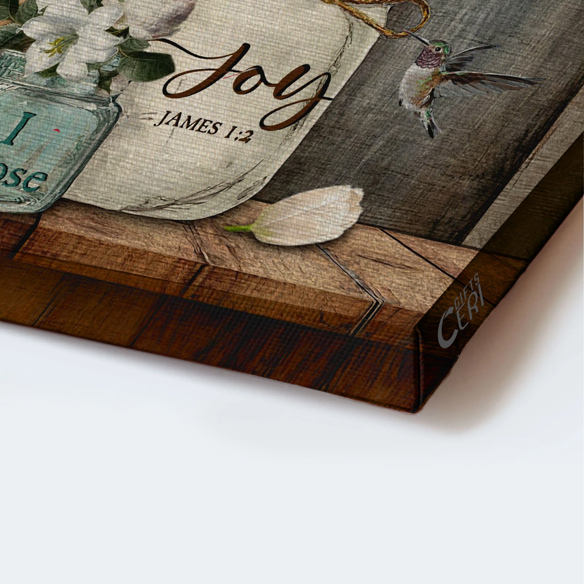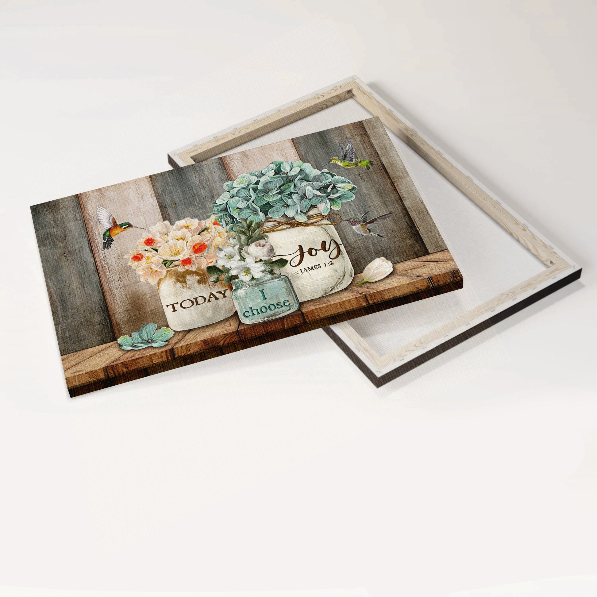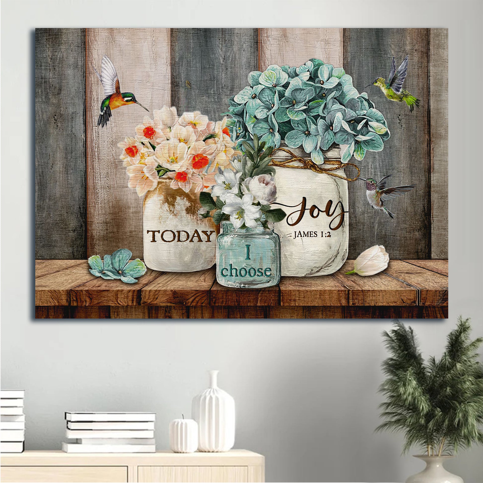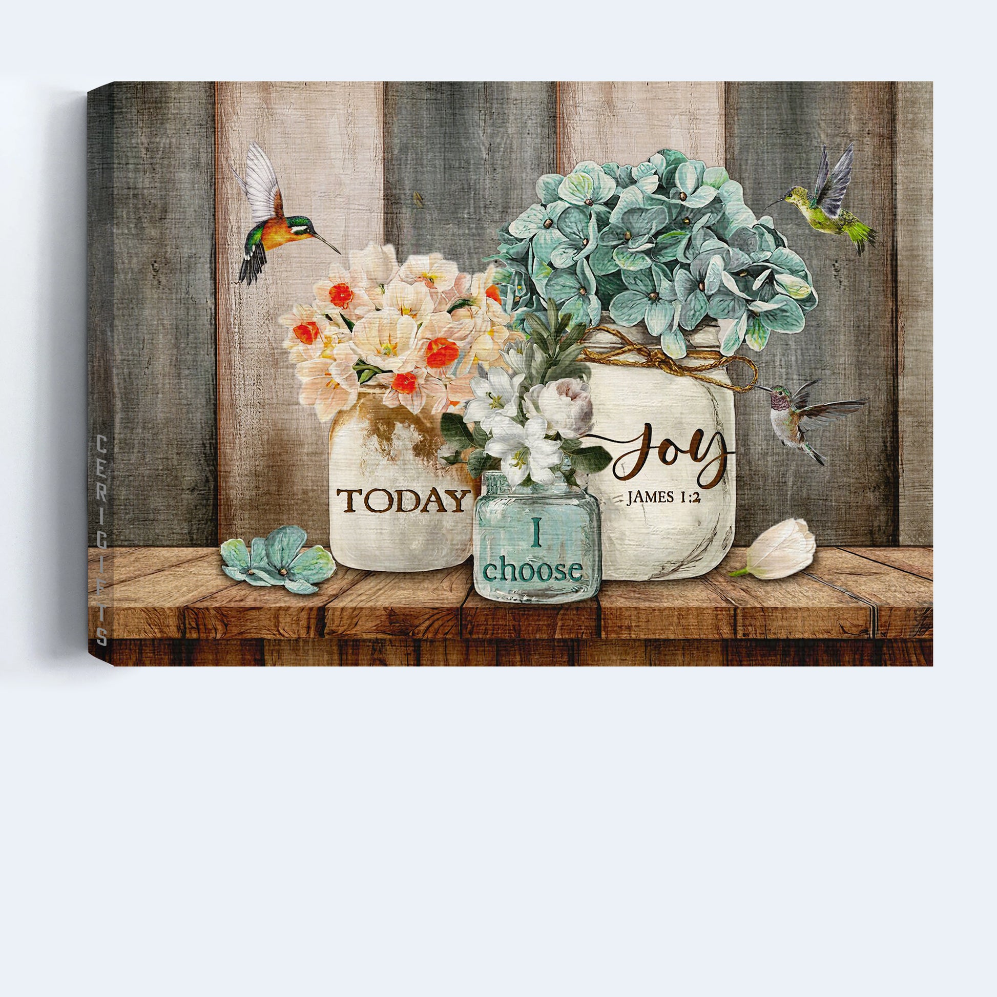 Blue Hydrangea, Beautiful Flower Vase, Hummingbird, Today I Choose Joy - Jesus Landscape Canvas, Wall Decor Visual Art is a perfect gift for your friends, your lover and even your family.