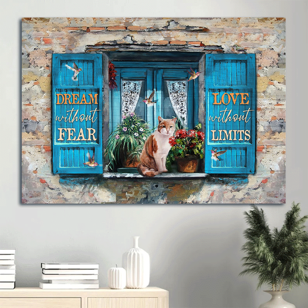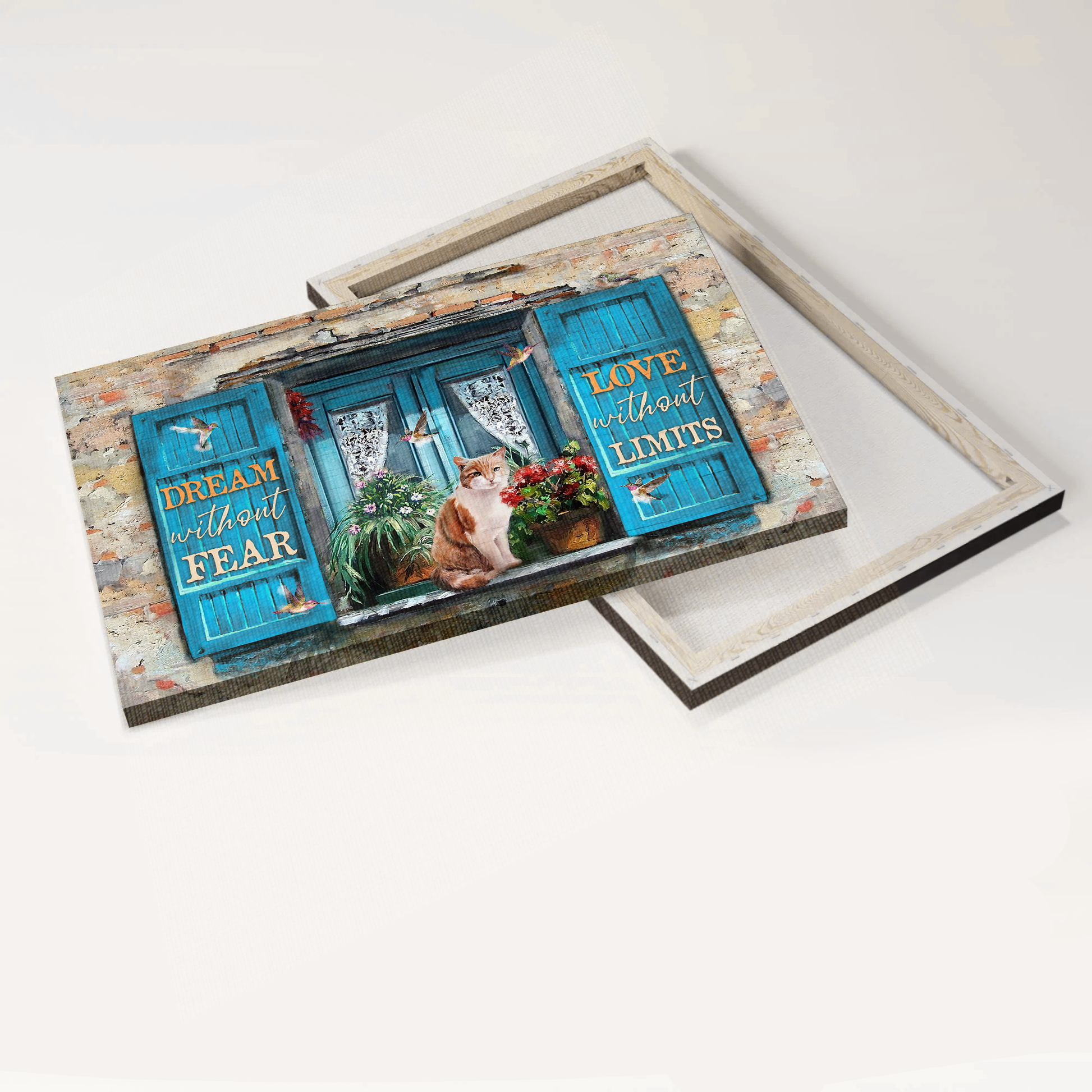 Jesus Landscape Canvas- Blue window, Cat drawing, Pretty flower canvas- Gift for Christian- Dream without fear - Landscape Canvas Prints, Christian Wall Art