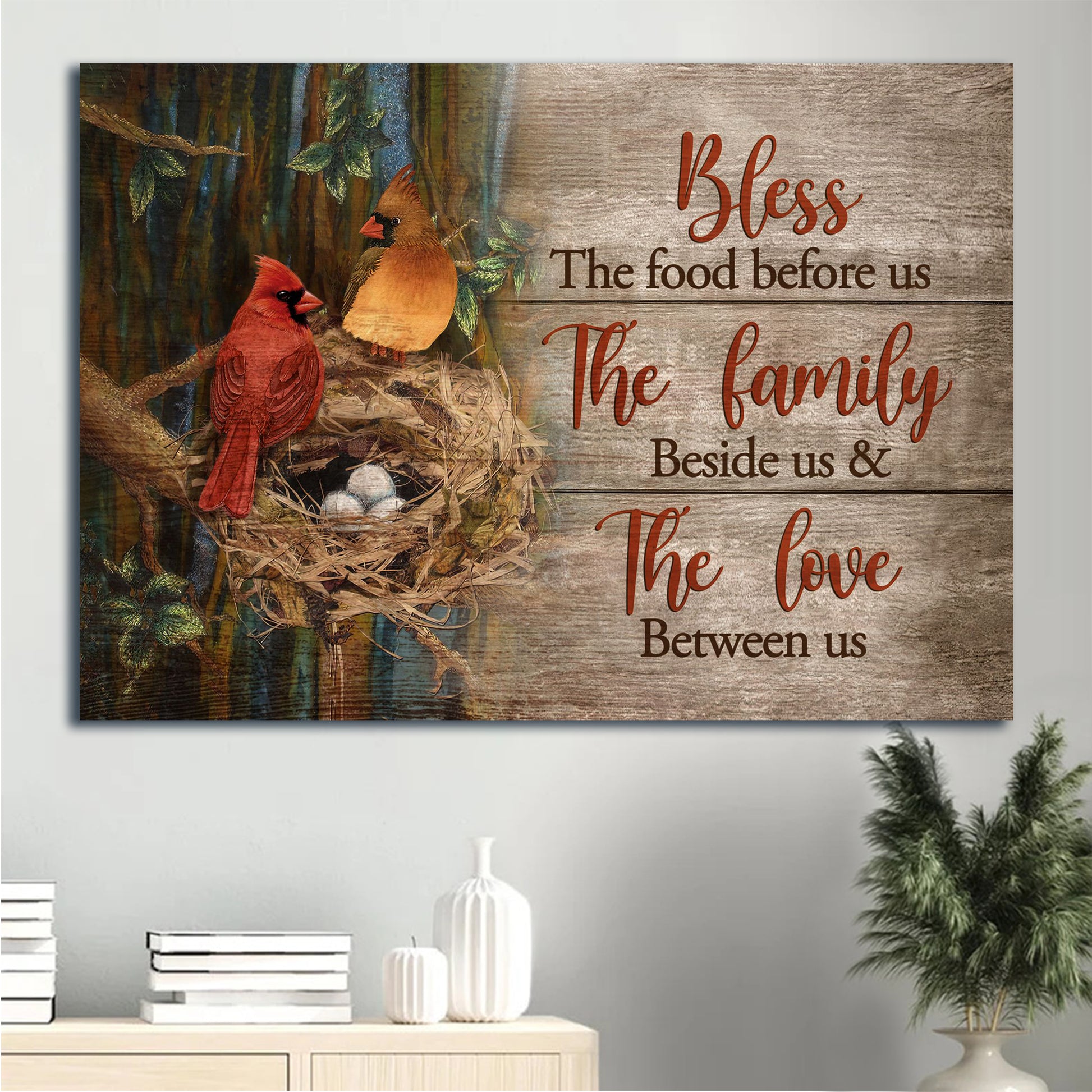Jesus Landscape Canvas - Cardinal Couple. Bird Nest, In The Forest Landscape Canvas - Gift For Christian - Bless The Food Before Us Landscape Canvas