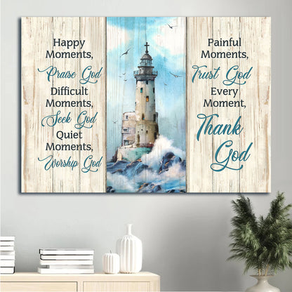 Jesus Landscape Canvas - Christ Lighthouse, Beach Painting, Beautiful Albatross Landscape Canvas - Gift For Christian -Every Moment, Thank God Landscape Canvas