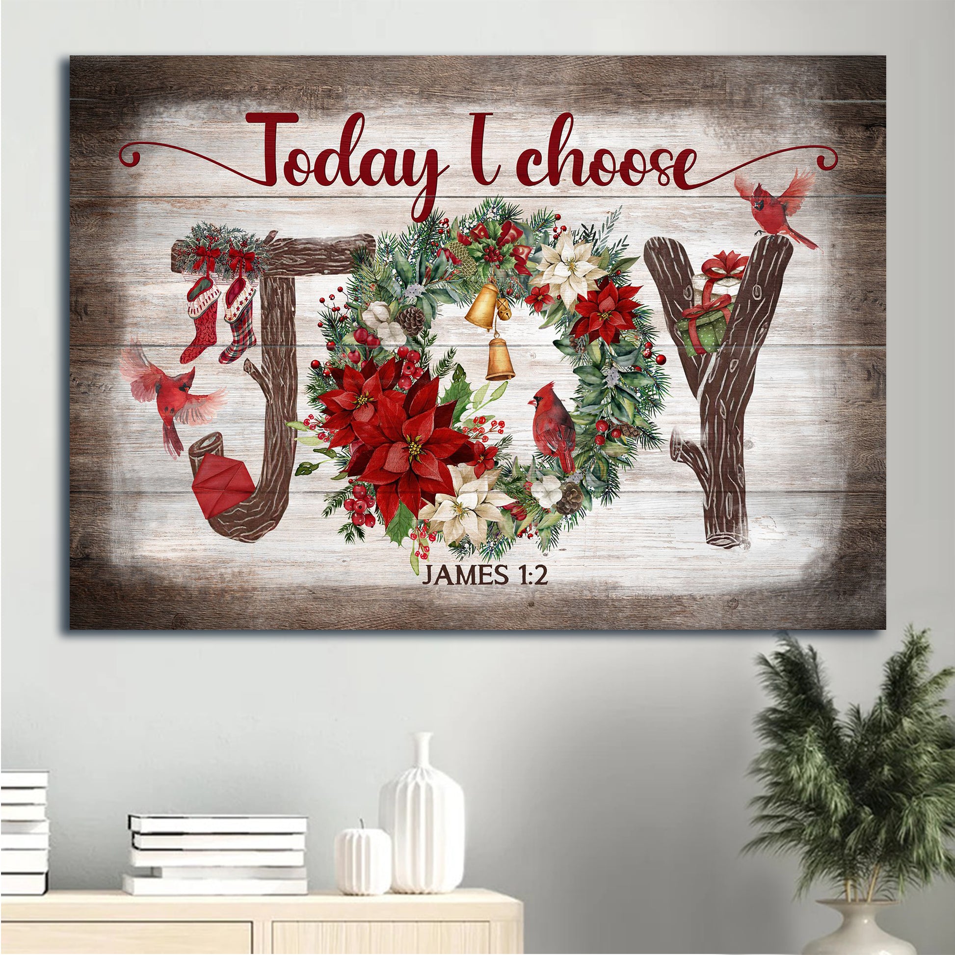 Christmas wreath, Cardinal, Today I choose joy - Jesus Landscape Canvas Prints, Wall Art suits any room from the kitchen, bedroom, bathroom, living room to outdoor space.