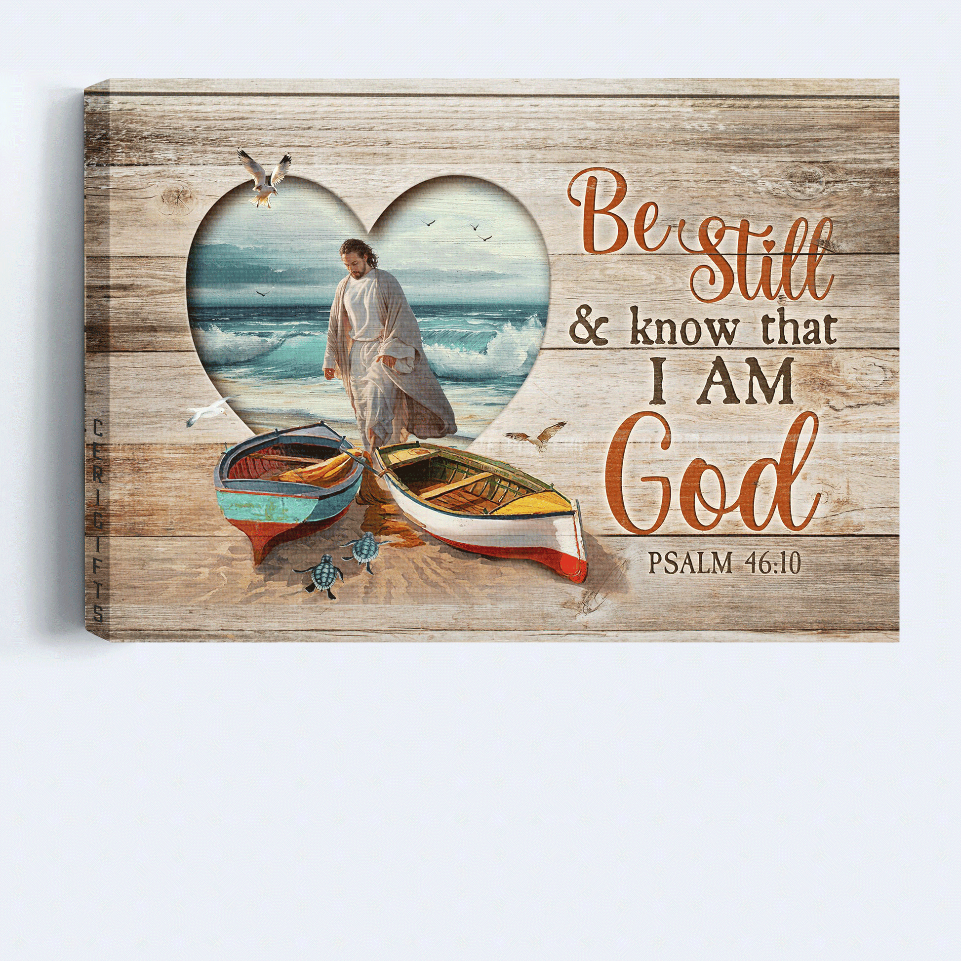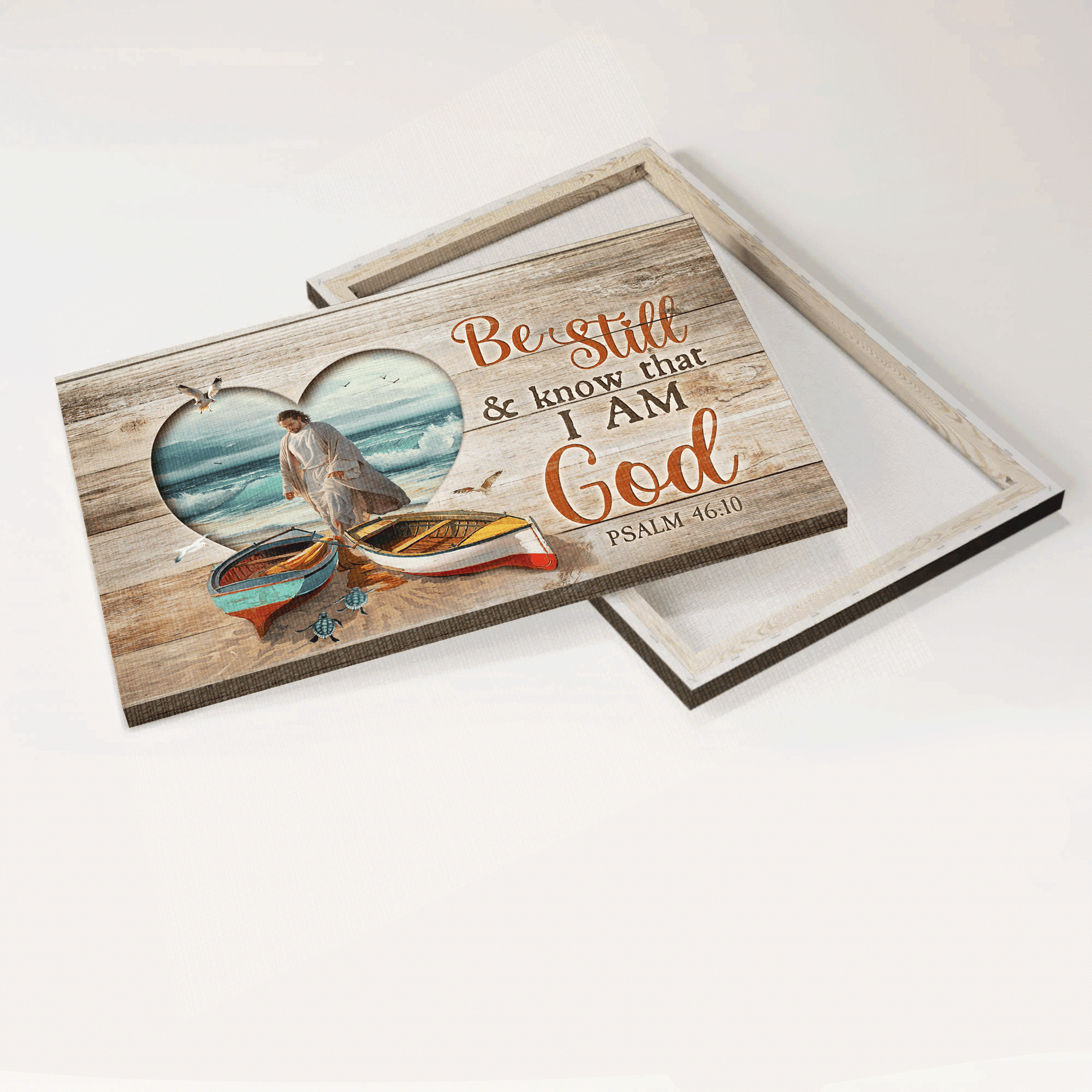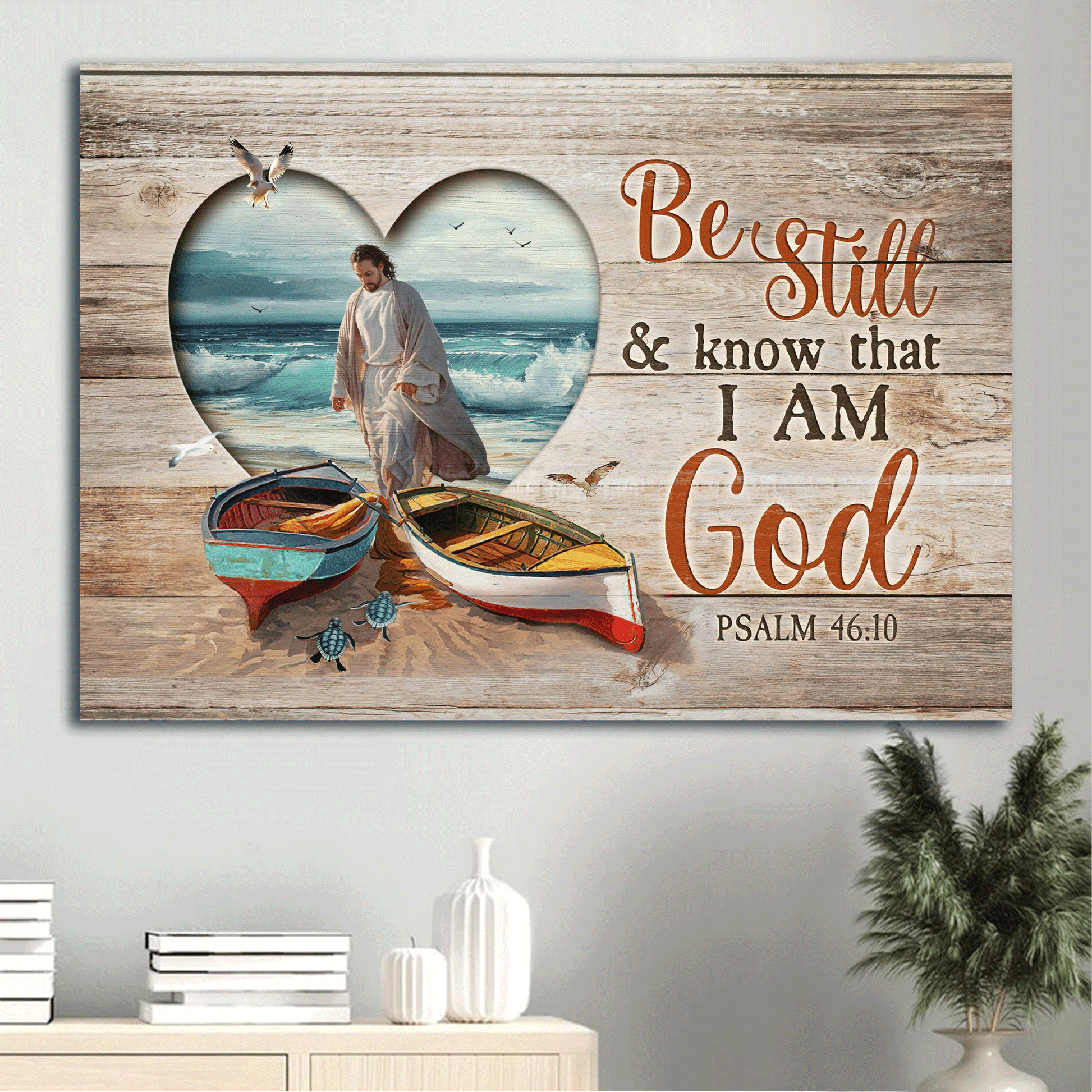 Jesus Landscape Canvas - Colorful Boat, Jesus Walking On Water, Blue Sea Turtle, Albatross, Heart Landscape Canvas - Gift For Christian - Be Still And Know That I Am God