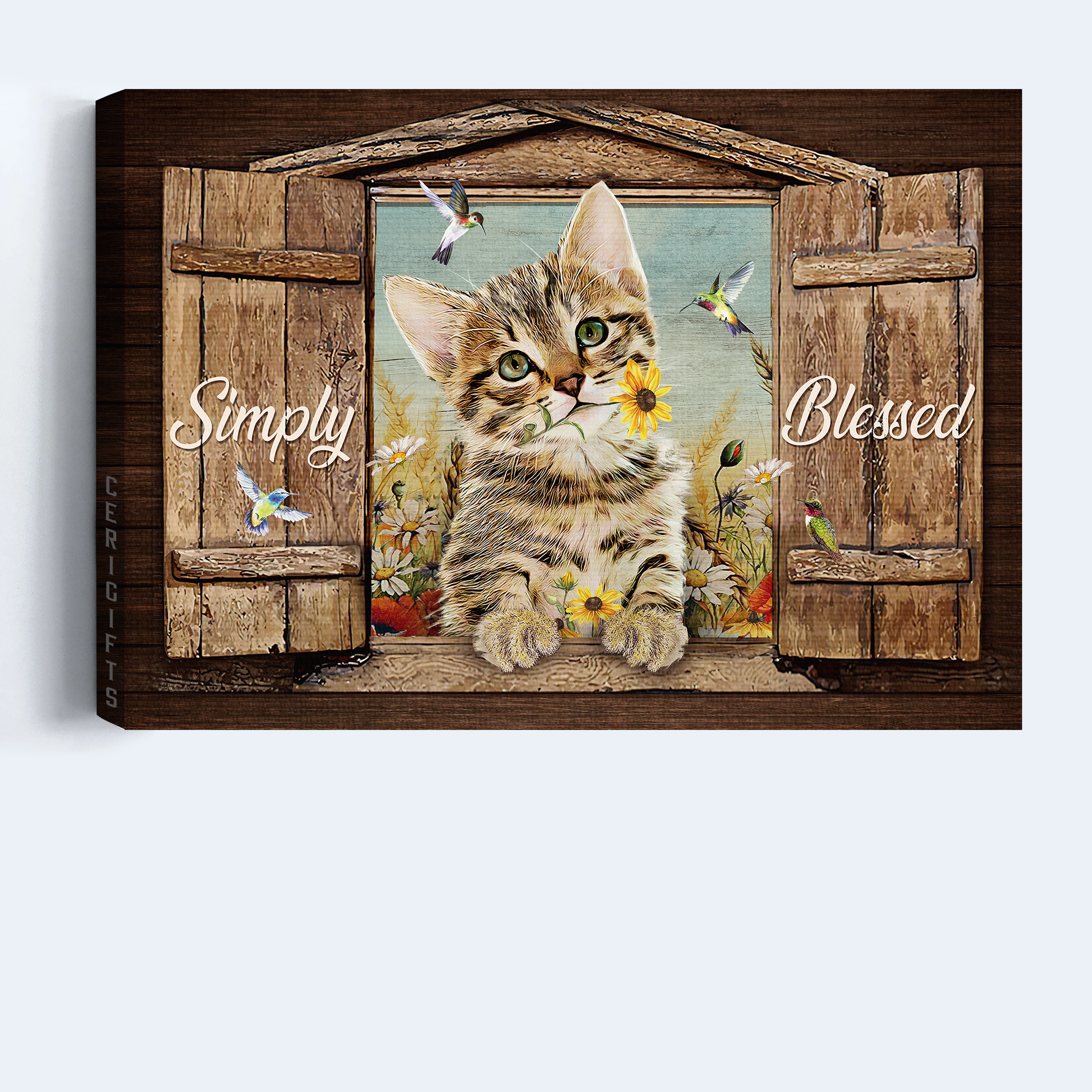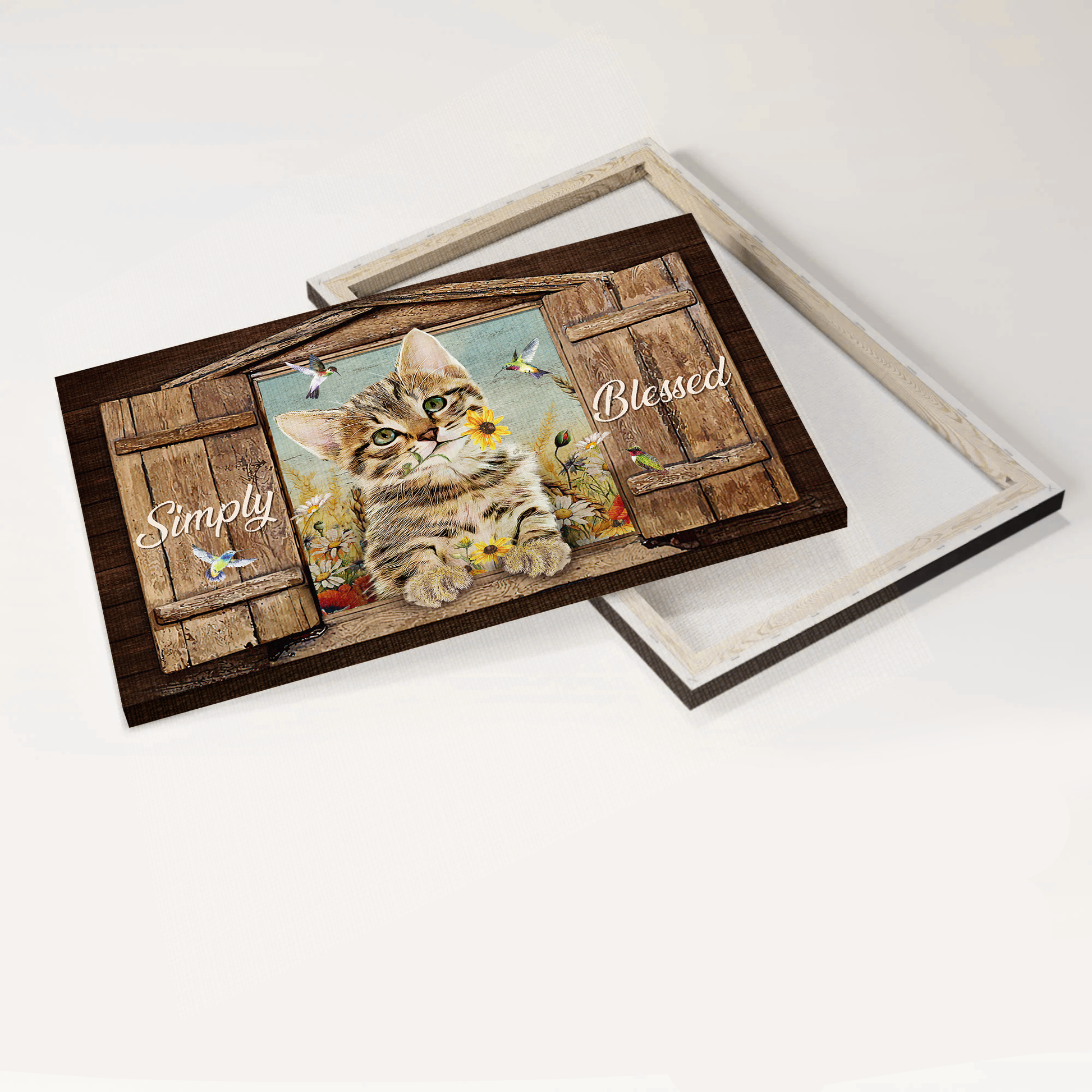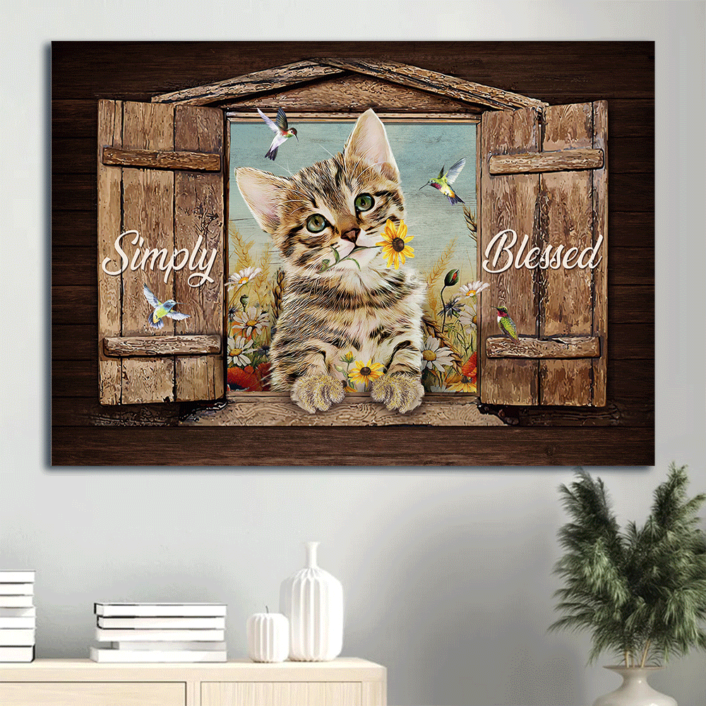Jesus Landscape Canvas- Dream cat, Yellow daisy, Colorful hummingbird canvas, Simply blessed canvas- Gift for Christian
