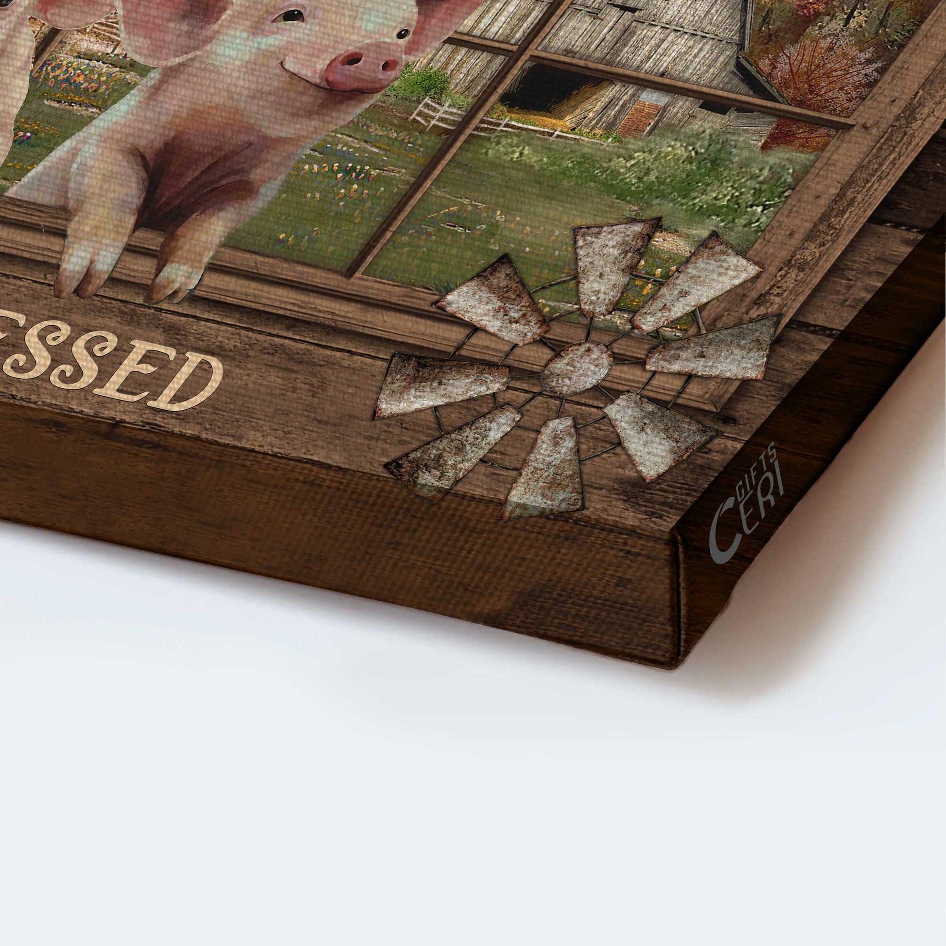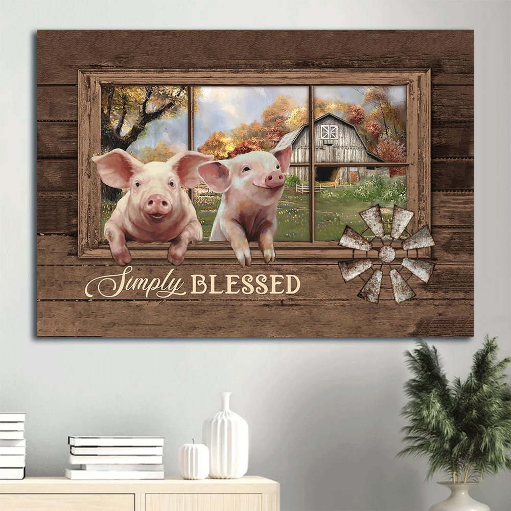 Jesus Landscape Canvas- Happy pig, Old windmill, Autumn forest, Vintage house, Simply blessed canvas- Gift for Christian - Landscape Canvas Prints, Christian Wall Art