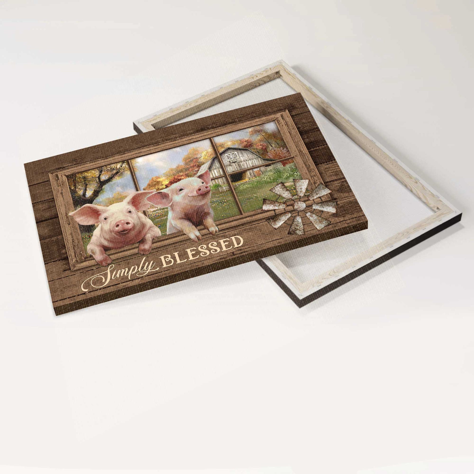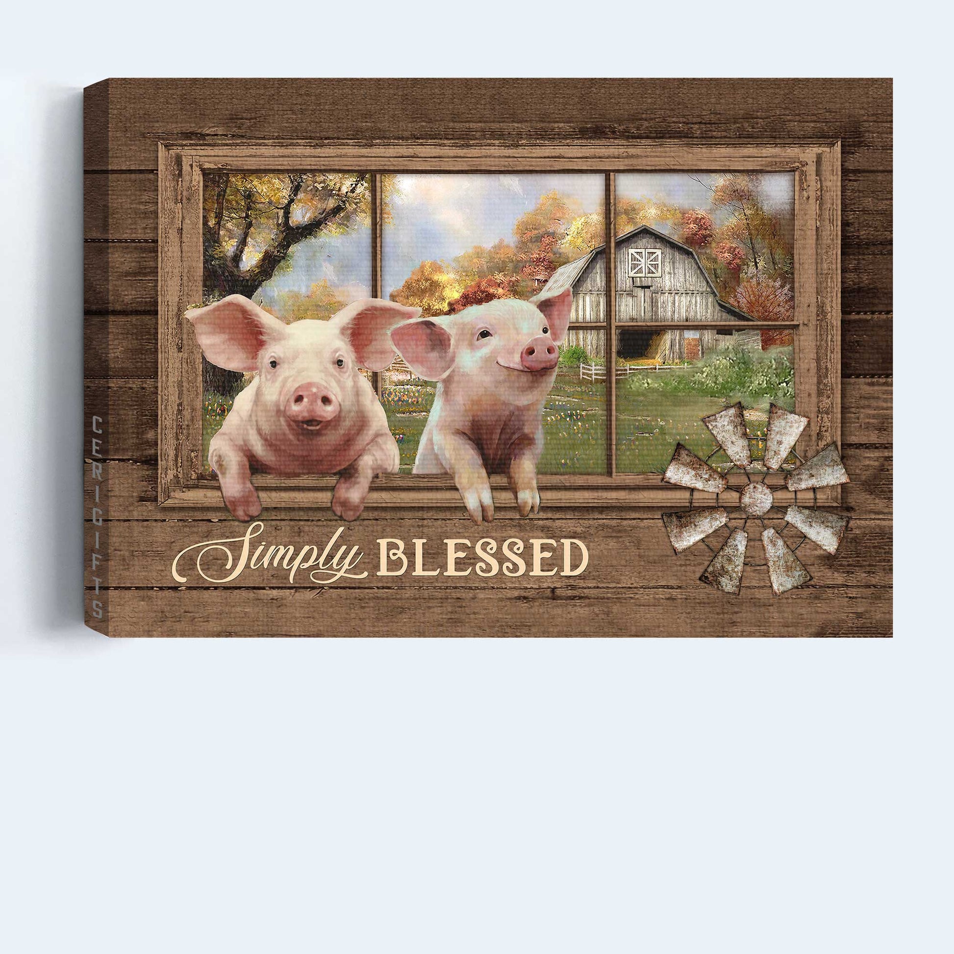 Jesus Landscape Canvas- Happy pig, Old windmill, Autumn forest, Vintage house, Simply blessed canvas- Gift for Christian - Landscape Canvas Prints, Christian Wall Art.