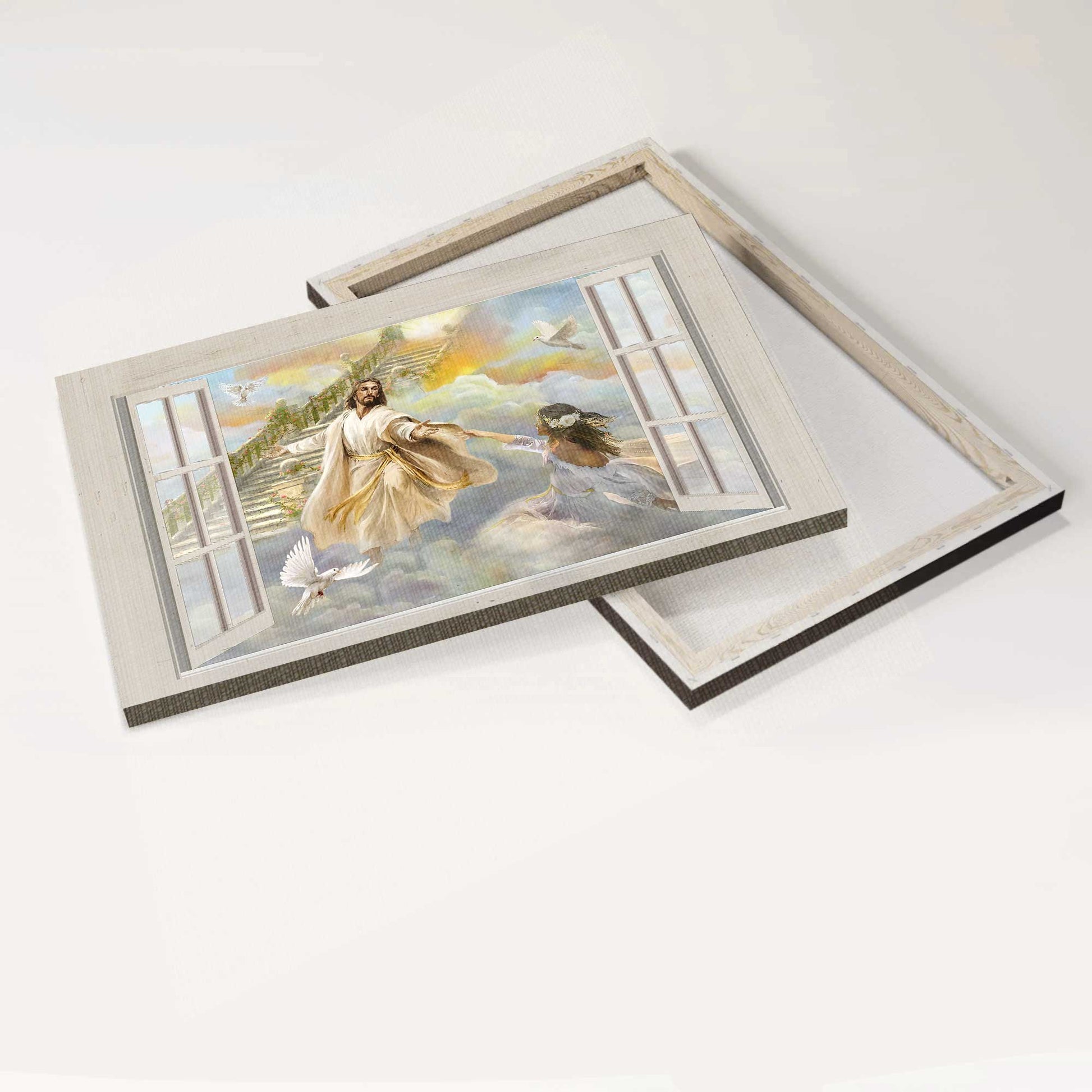 Jesus Landscape Canvas- Jesus painting, Beautiful girl, White dove, The way to heaven, Take my hand - Gift for Christian - Landscape Canvas Prints, Christian Wall Art