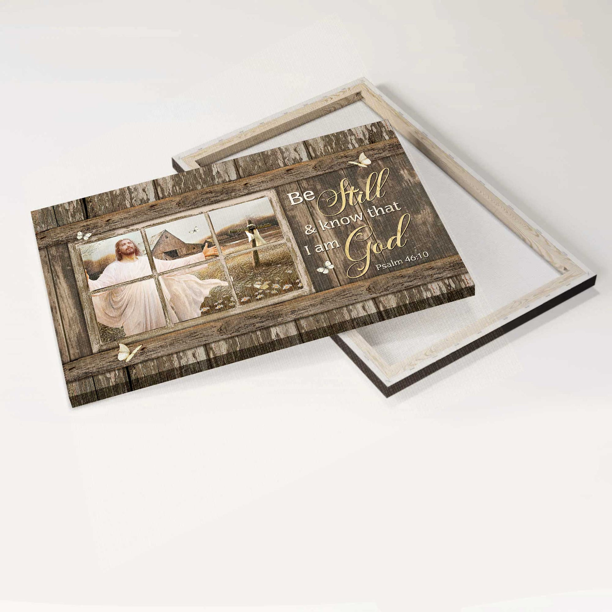Jesus Landscape Canvas- Jesus painting, Wooden cross, White butterfly- Gift for Christian- Be still and know that I am God - Landscape Canvas Prints, Christian Wall Art