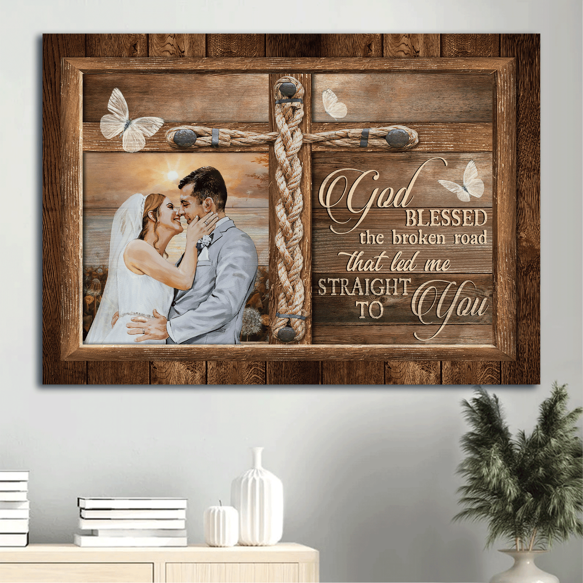 Jesus Landscape Canvas - Just married, Pretty sunset, Unique cross Canvas - Gift For Christian, Couple, Valentine's Day - God blessed the broken road