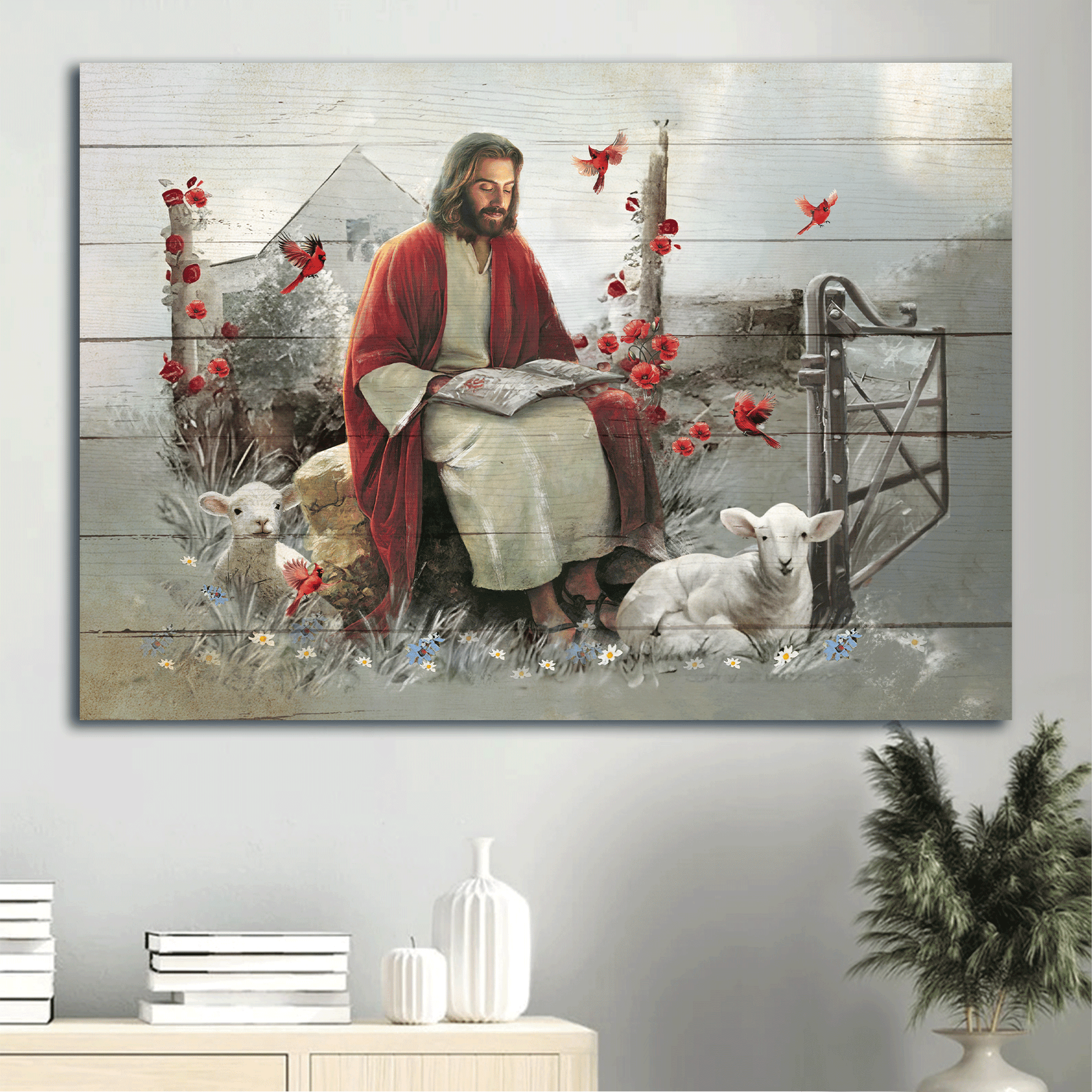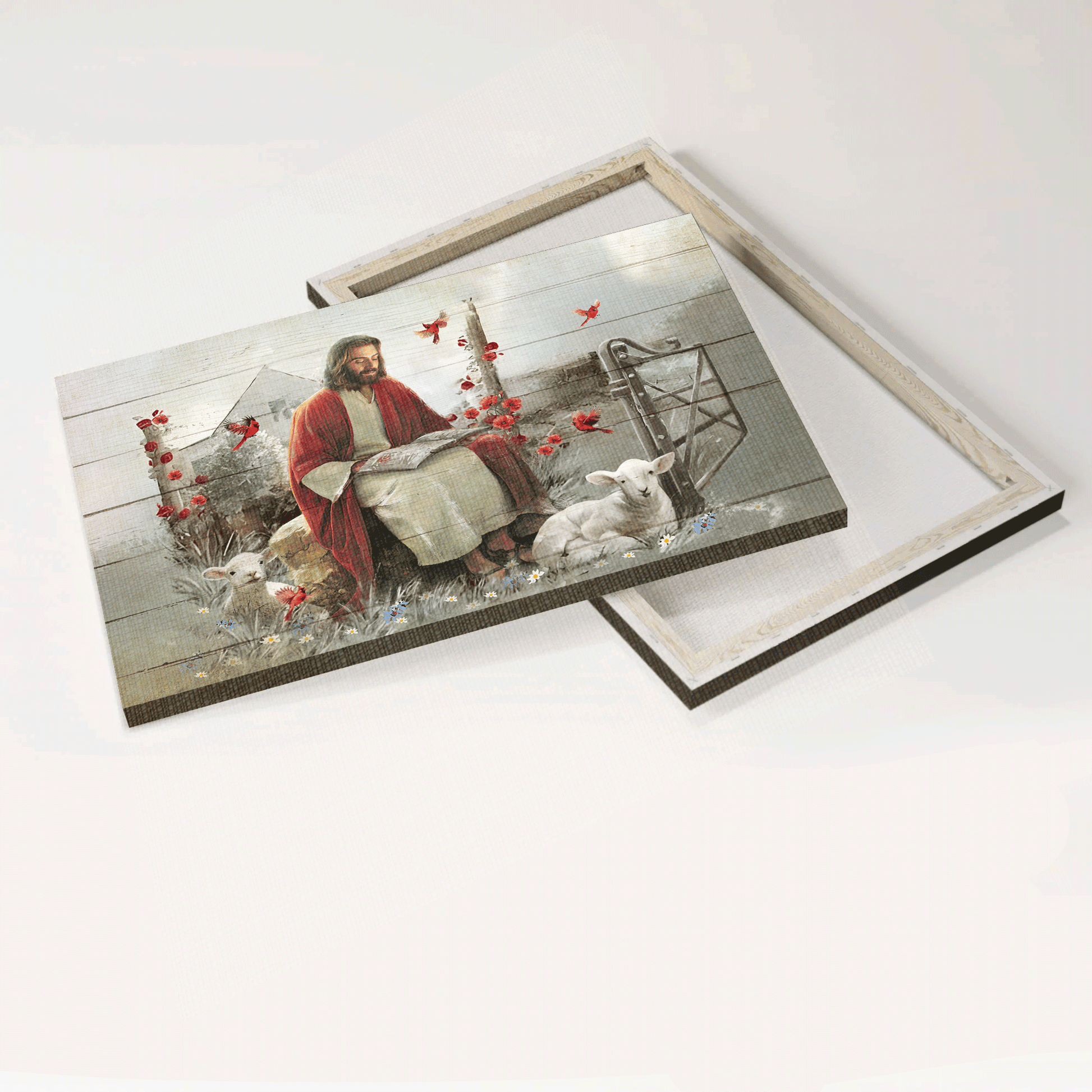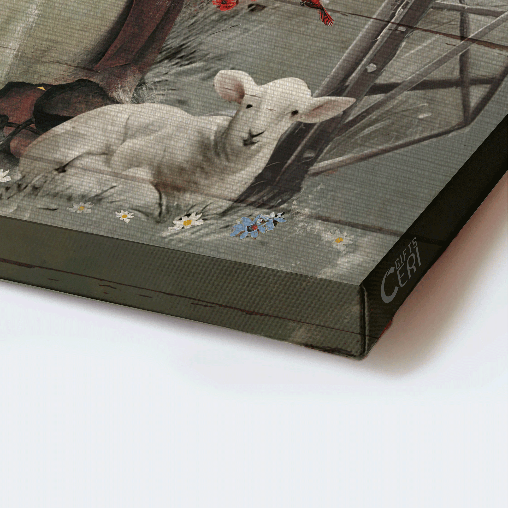 Jesus Landscape Canvas - Lamb of God, Red cardinal, Rustic garden God Landscape Canvas - Inspirational gift, Gift For Religious Christian