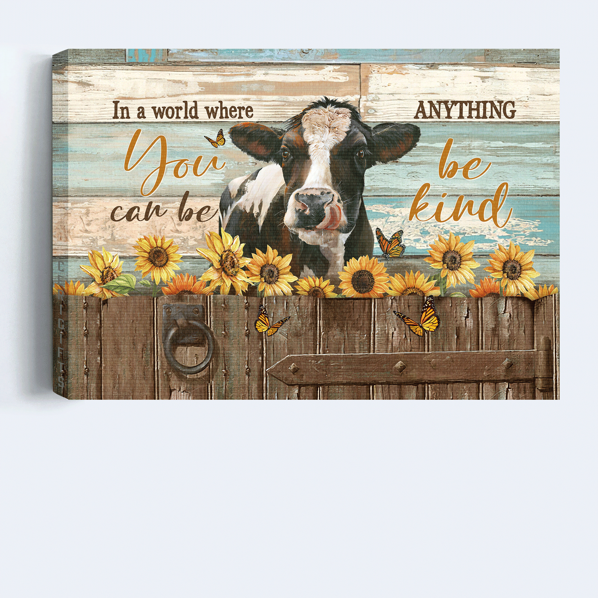 Jesus Landscape Canvas - Lovely dairy cow, Sunflower painting Landscape Canvas - Gift For Christian -Stunning monarch butterfly, Be kind Landscape Canvas