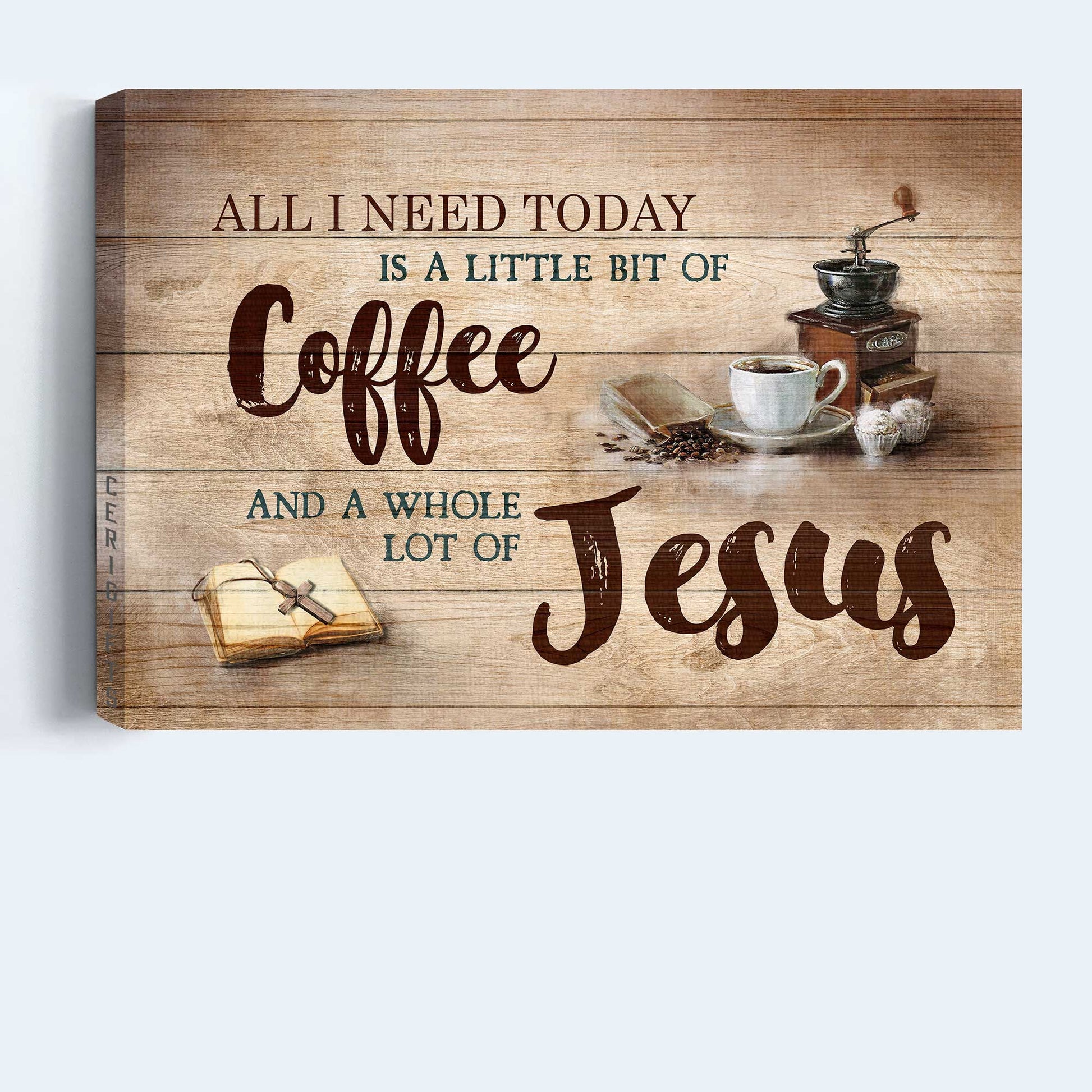 Jesus Landscape Canvas- Making coffee, Bible, Cross canvas- Gift for Christian- All I need today is a little of coffee and a whole lot of Jesus - Landscape Canvas Prints, Wall Art can be hung on the wall of your kitchen, living room, bedroom, bathroom, and even outdoor space.