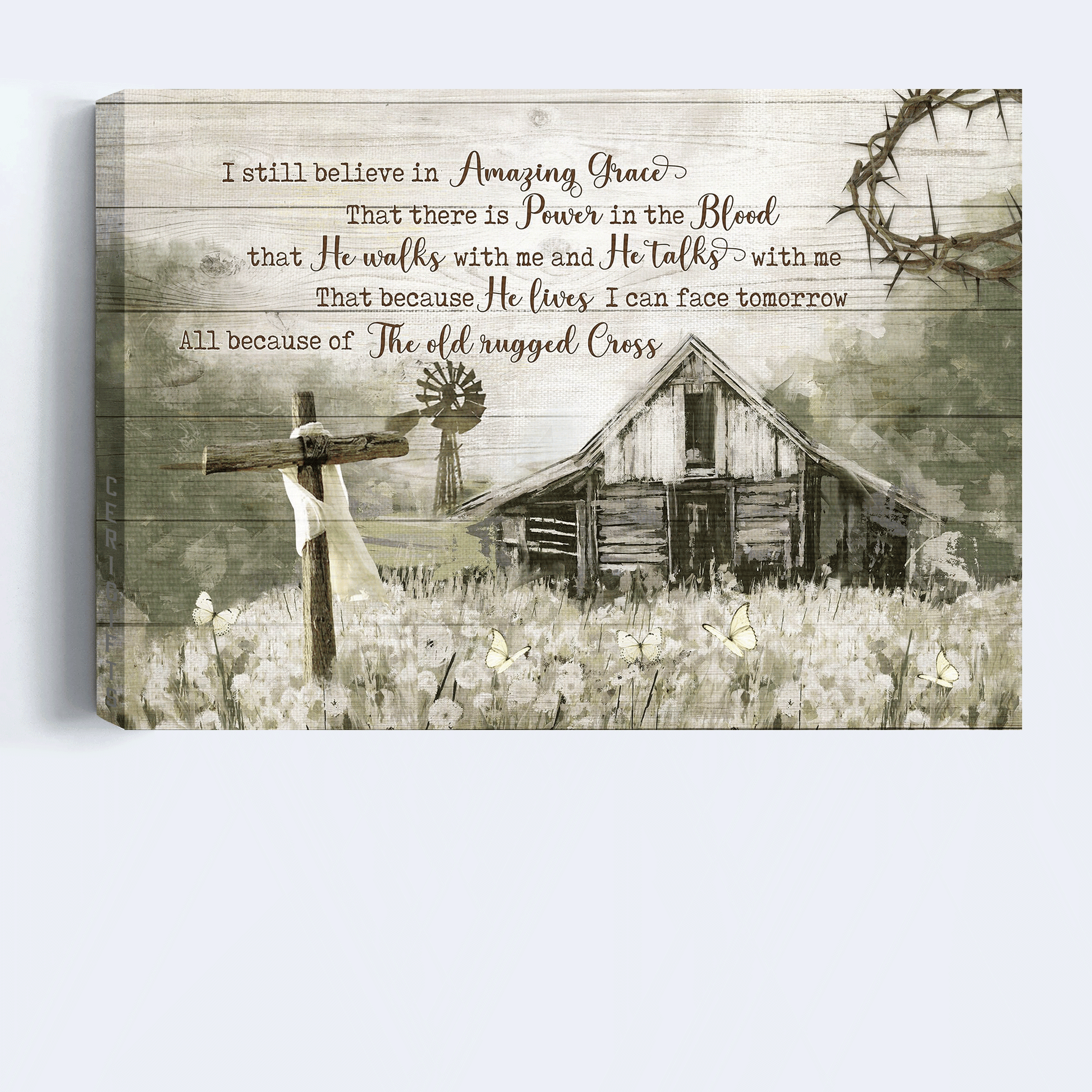 Jesus Landscape Canvas - Old Barn painting, Countryside, Dandelion Field Landscape Canvas - Gift For Christian - I still believe in amazing grace Landscape Canvas