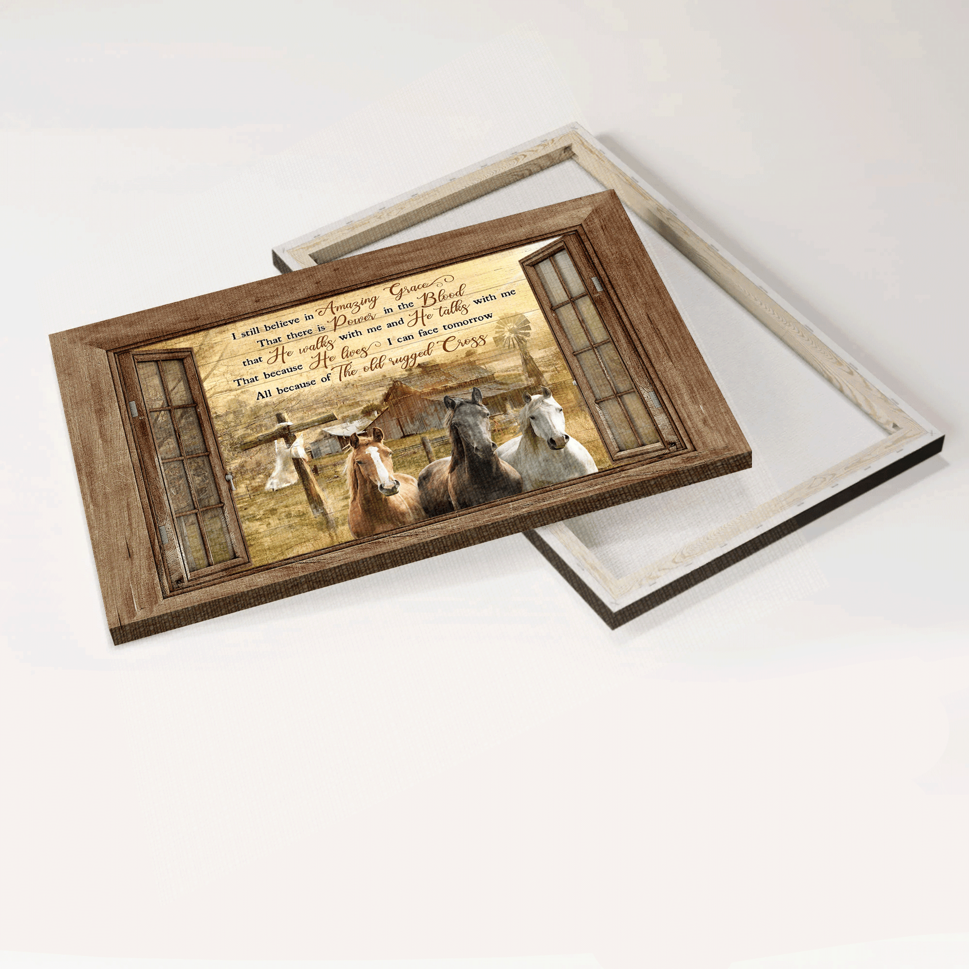 Jesus Landscape Canvas - Old Barn Painting, Horses, Countryside landscape Landscape Canvas - Gift For Christian - I still believe in amazing grace Landscape Canvas