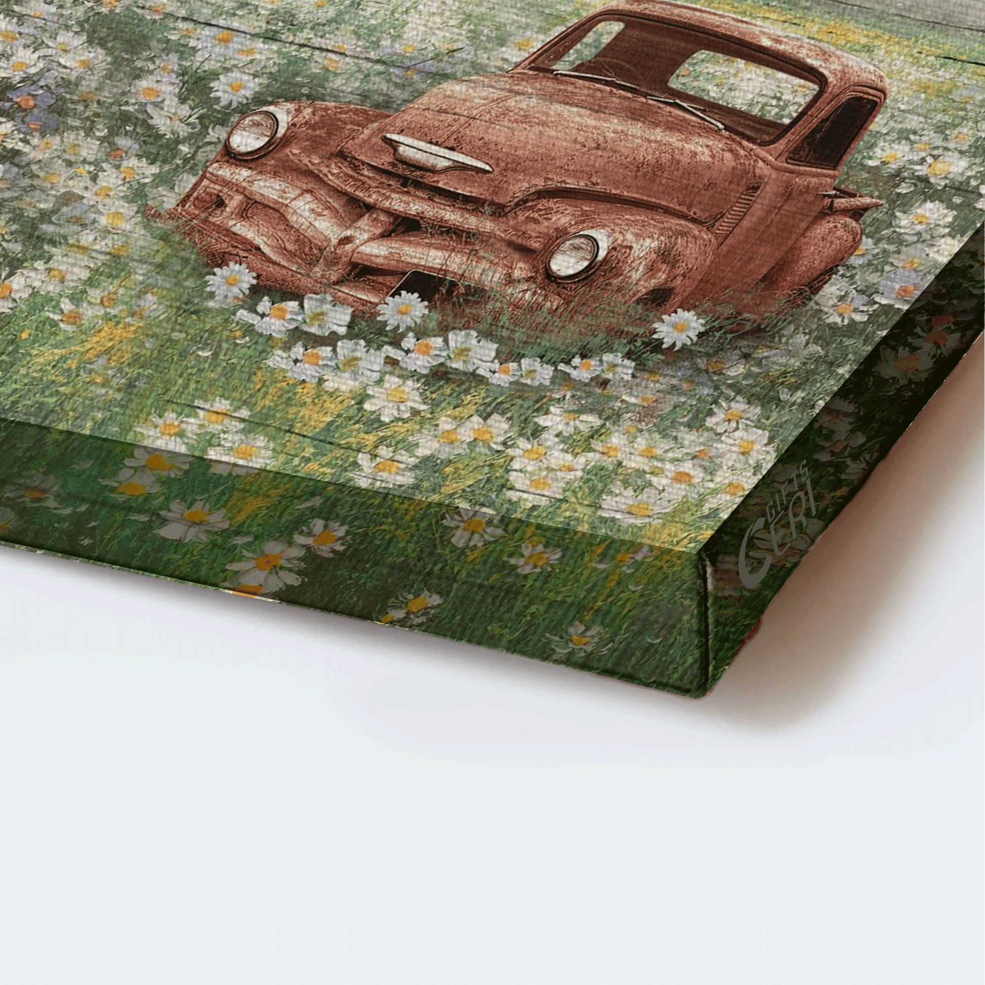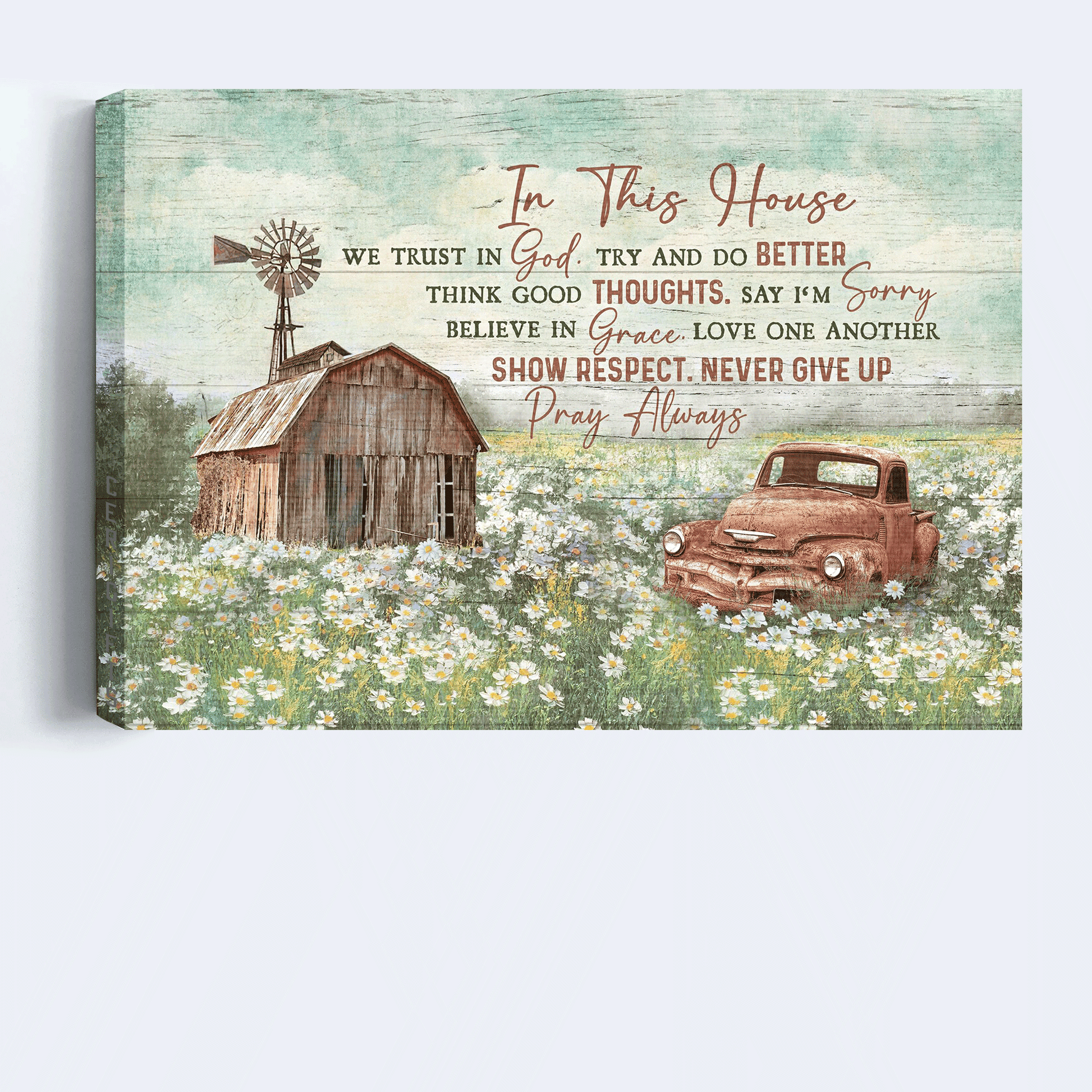 Jesus Landscape Canvas - Old barn painting, Daisy field Landscape Canvas - Gift For Christian - In this house we trust in God Landscape Canvas