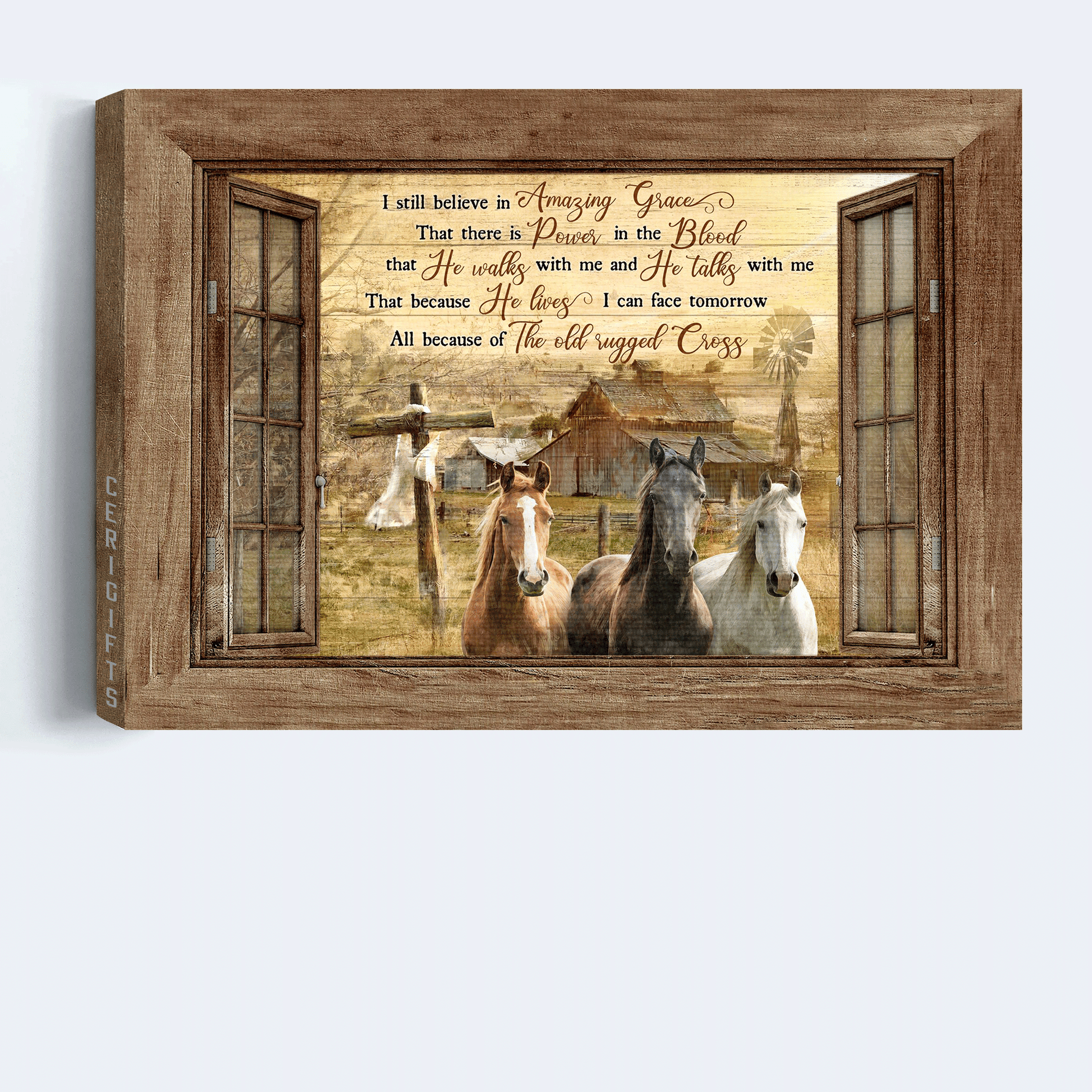 Jesus Landscape Canvas - Old Barn Painting, Horse painting, Countryside Landscape Canvas - Gift For Christian - I still believe in amazing grace Landscape Canvas