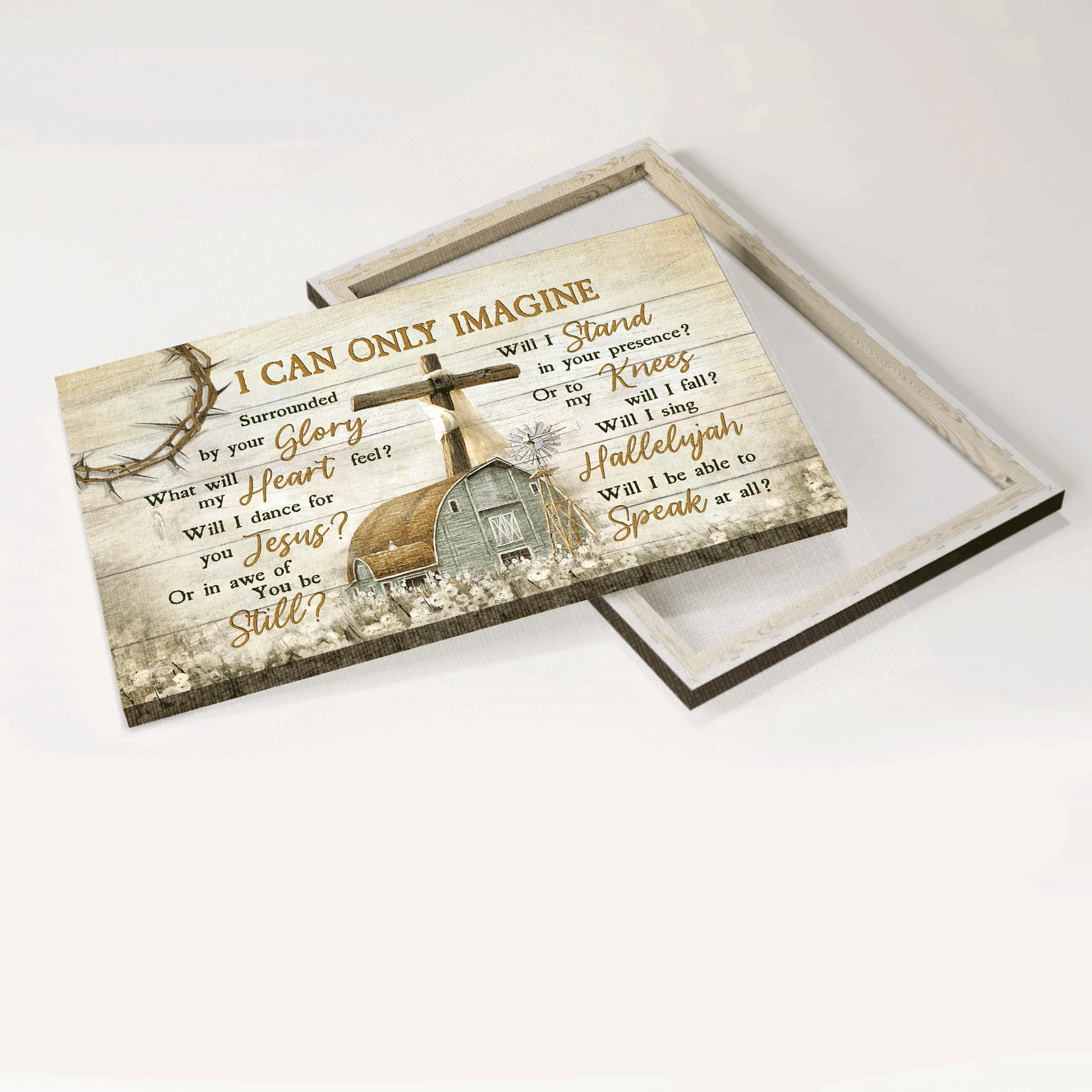 Jesus Landscape Canvas - Old barn painting, Wooden Cross, Flower Field Landscape Canvas - Gift For Christian - I can only imagine Landscape Canvas