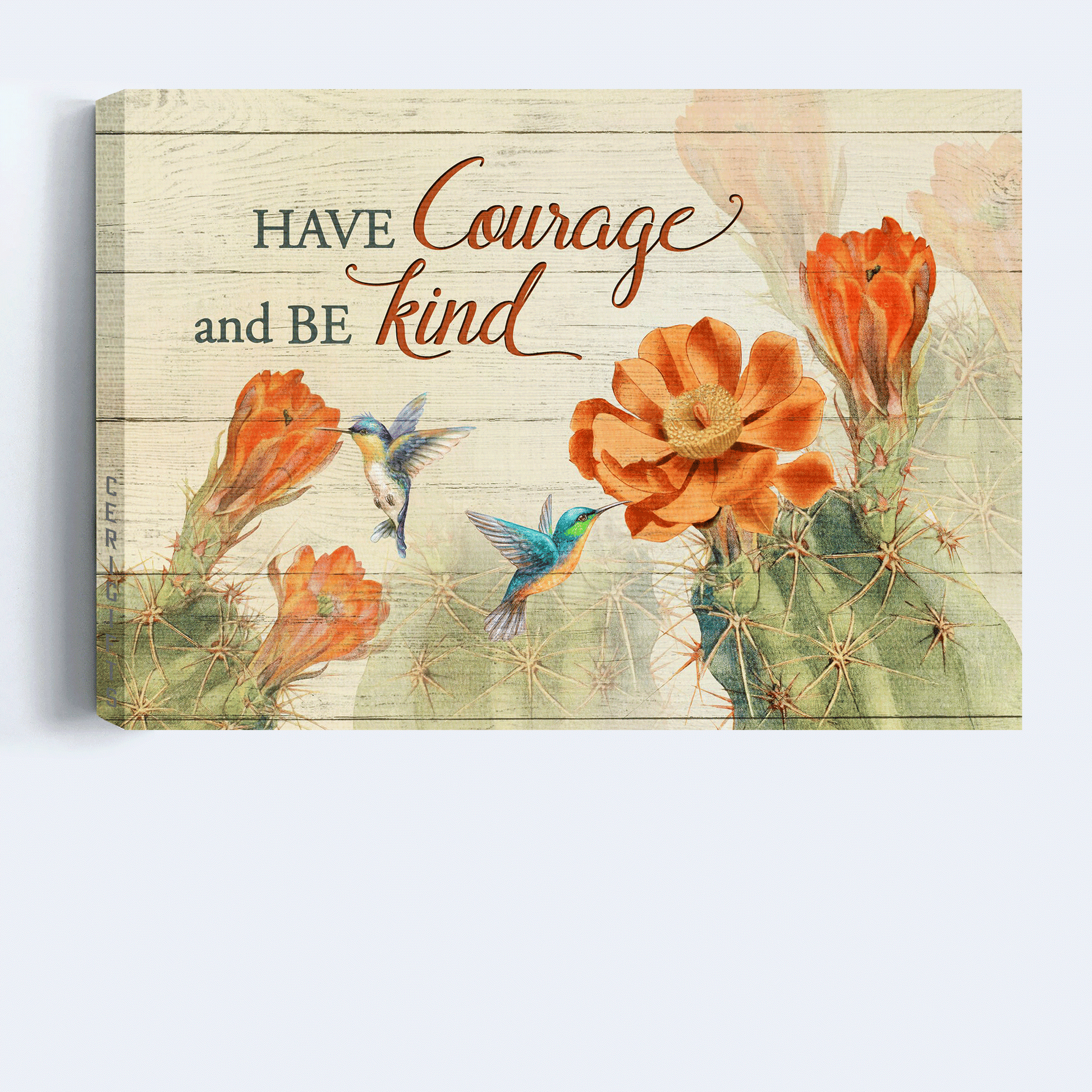 Jesus Landscape Canvas - Orange cactus flower, Hummingbird drawing Landscape Canvas - Gift For Christian - Have courage and be kind Landscape Canvas