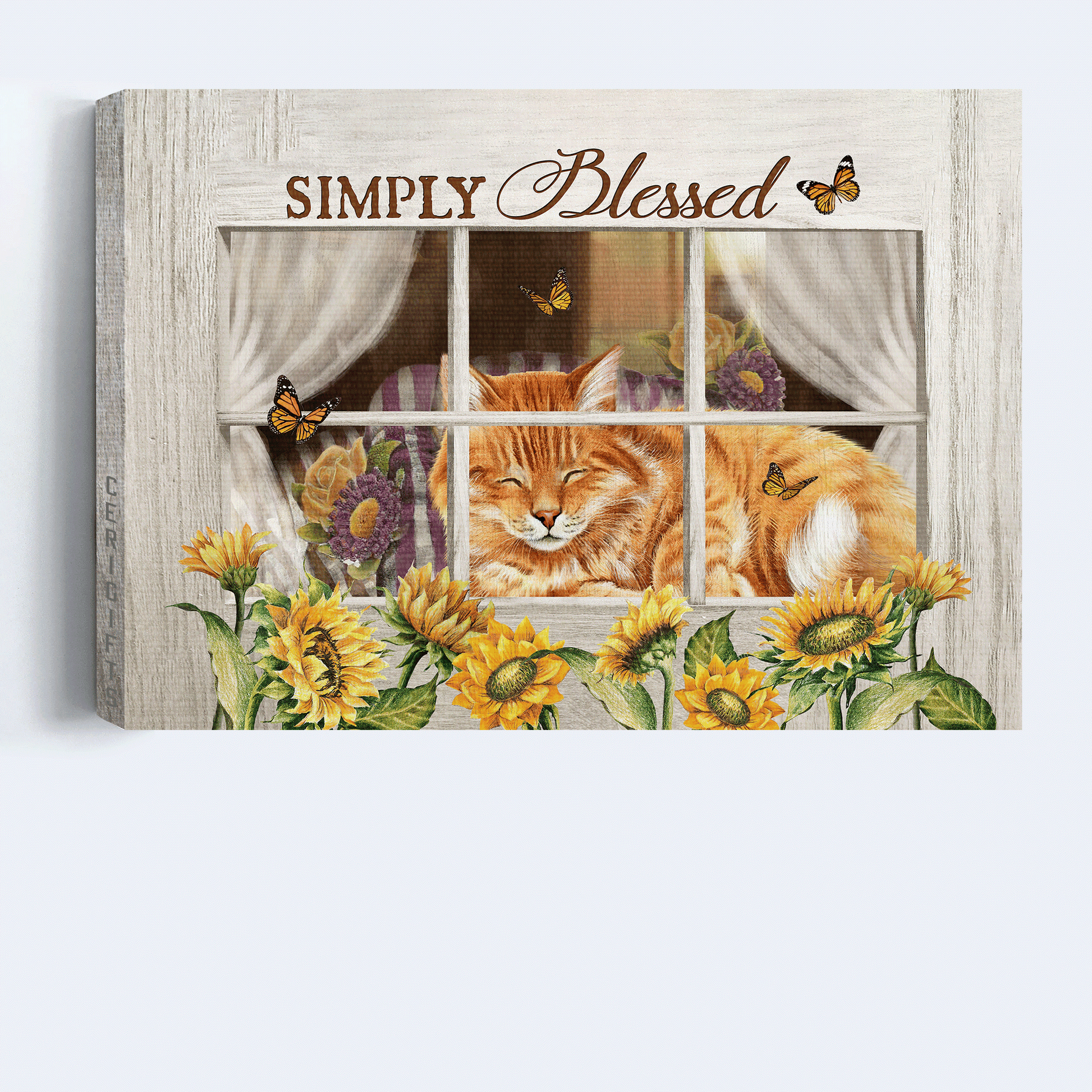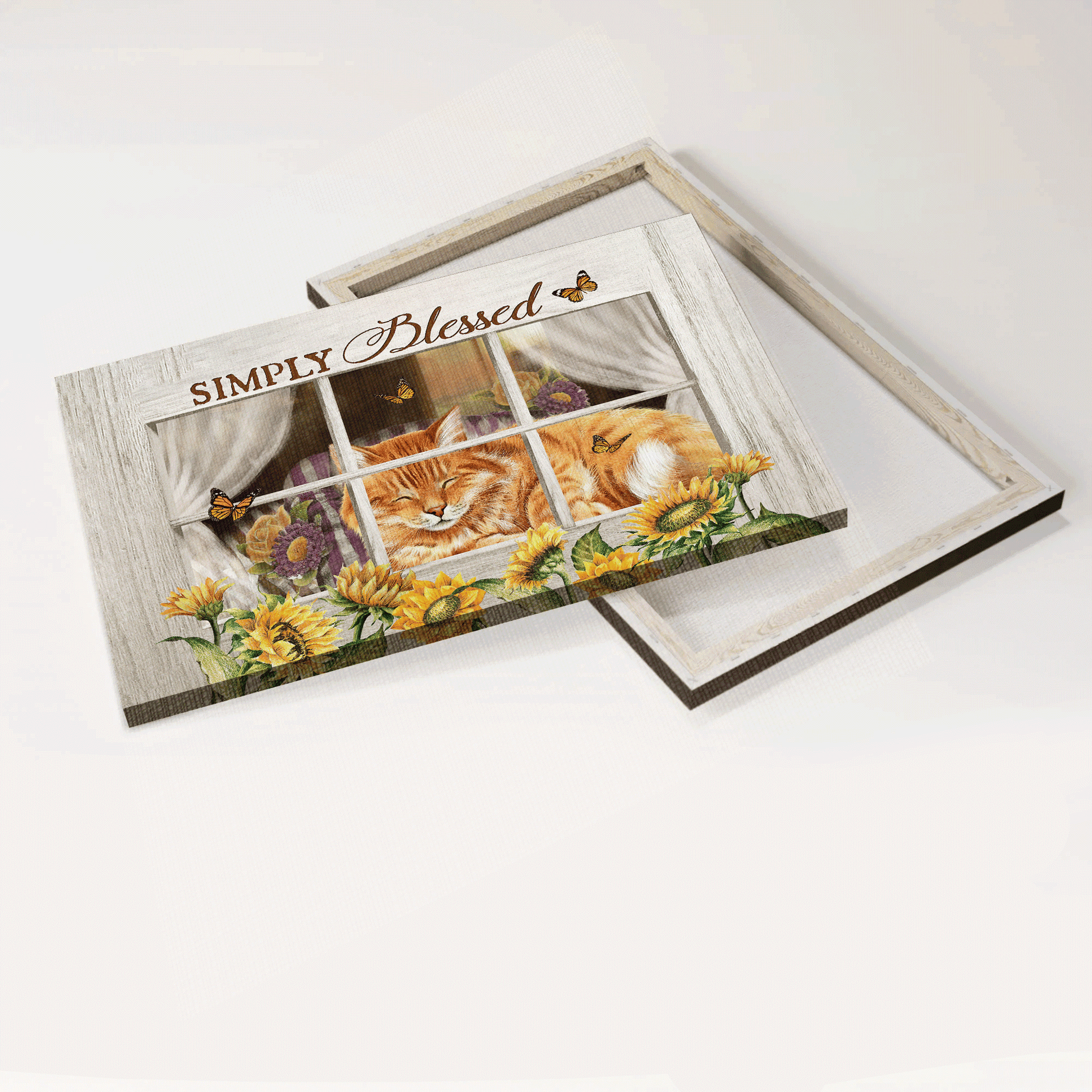 Jesus Landscape Canvas - Orange tabby cat, Sunflower painting, White window Landscape Canvas - Gift For Christian - Simply blessed Landscape Canvas