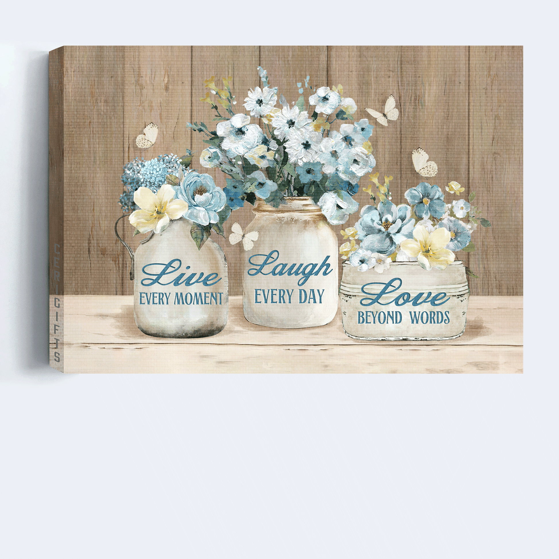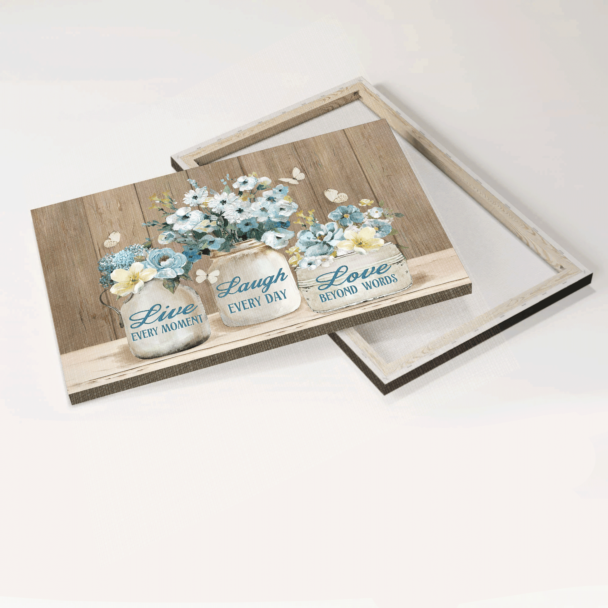 Jesus Landscape Canvas - Pastel flower, Blue garden, Butterfly drawing Landscape Canvas - Gift For Christian - Live every moment, Laugh every day Landscape Canvas