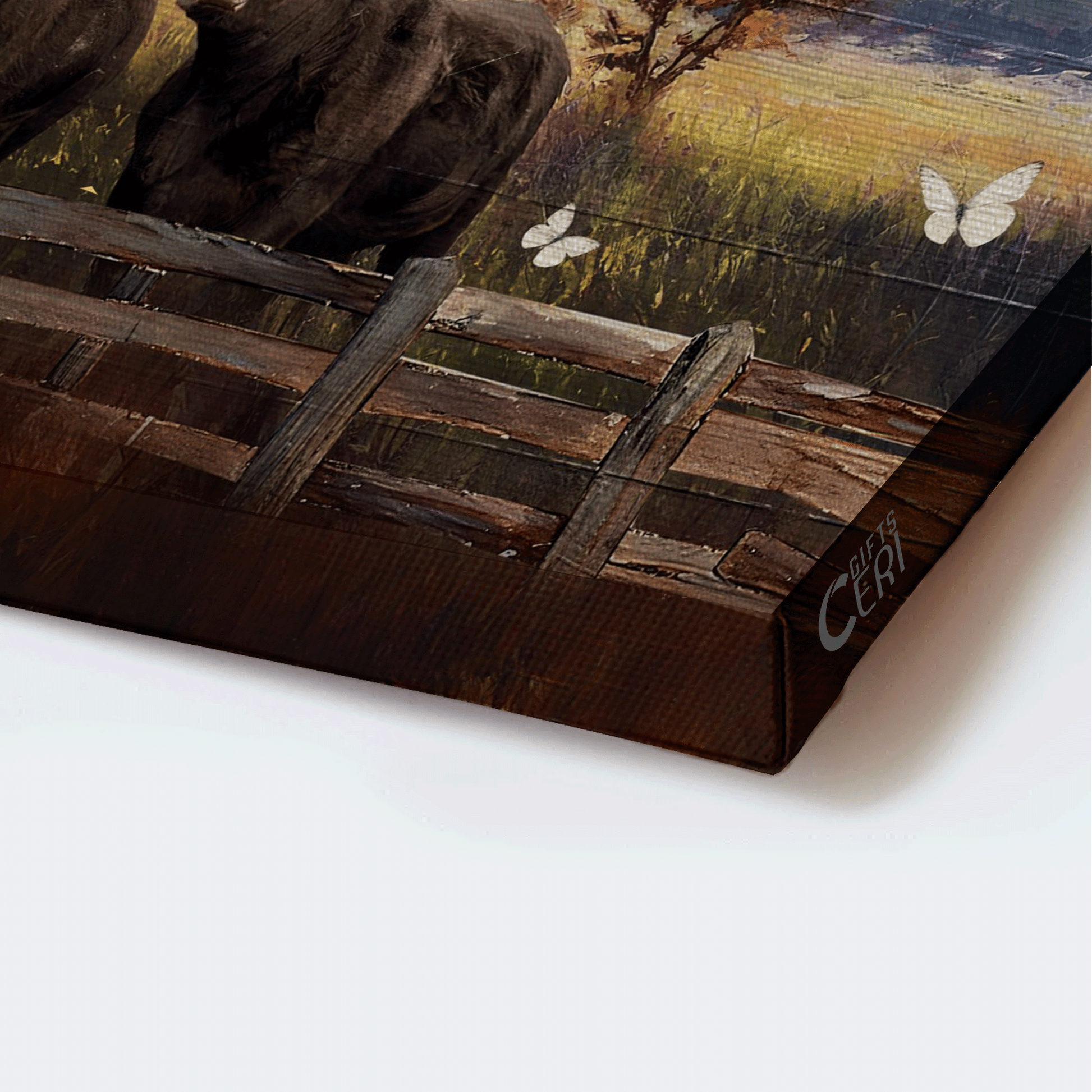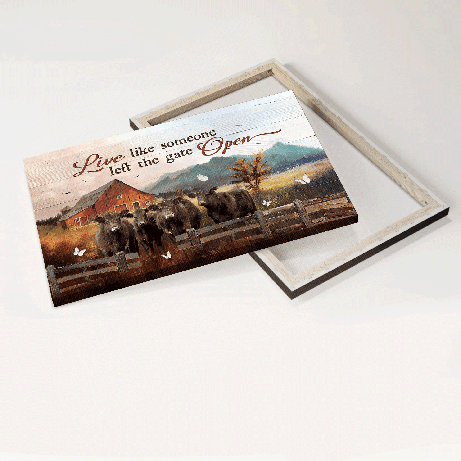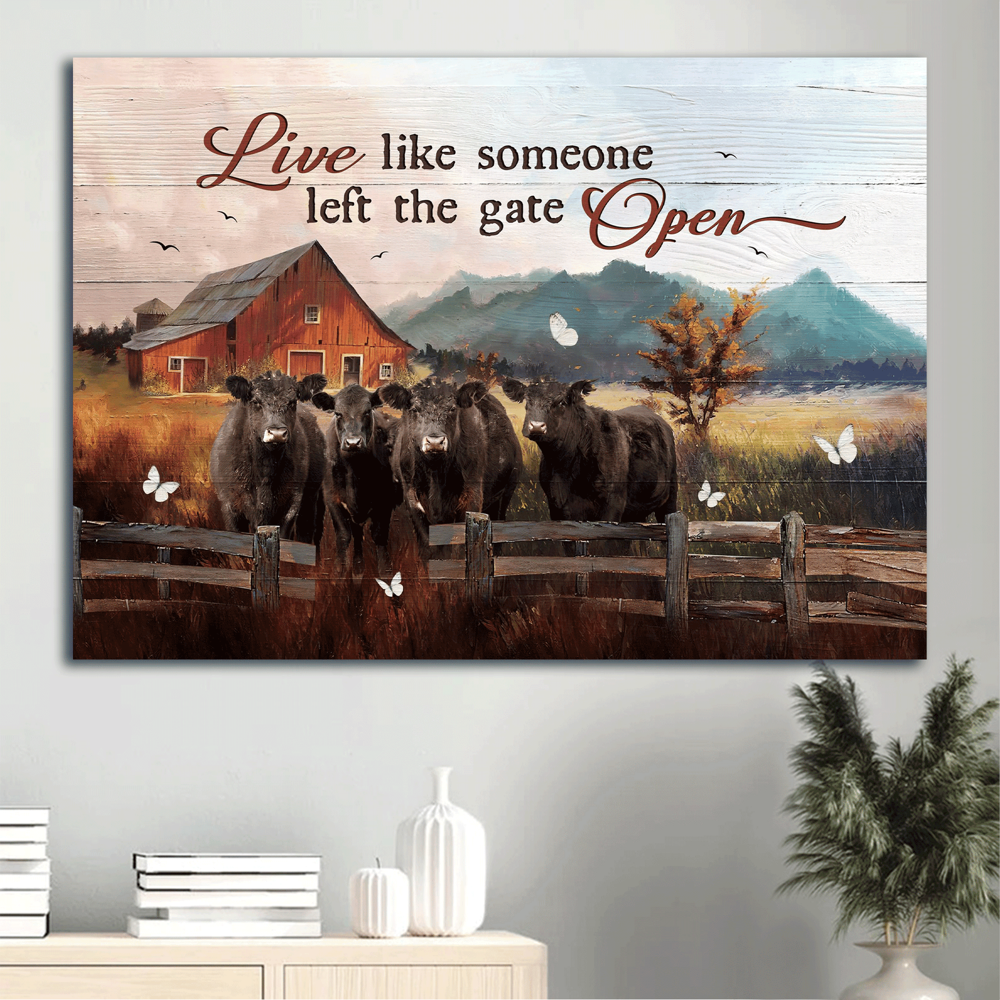 Jesus Landscape Canvas - Peaceful farm, Angus cow, White butterfly Landscape Canvas - Gift For Christian - Live like someone left the gate open Landscape Canvas