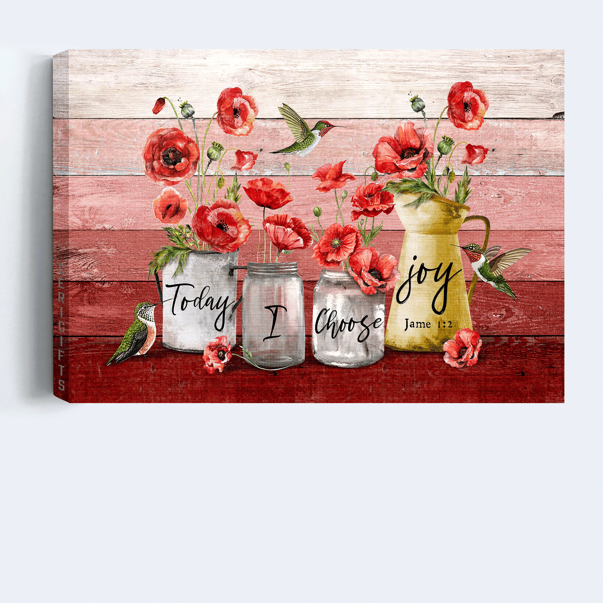 Jesus Landscape Canvas - Poppy Flower, Mason jars, Hummingbird Canvas - Gift for Christian - Today I choose Joy Landscape Canvas Prints, Wall Art