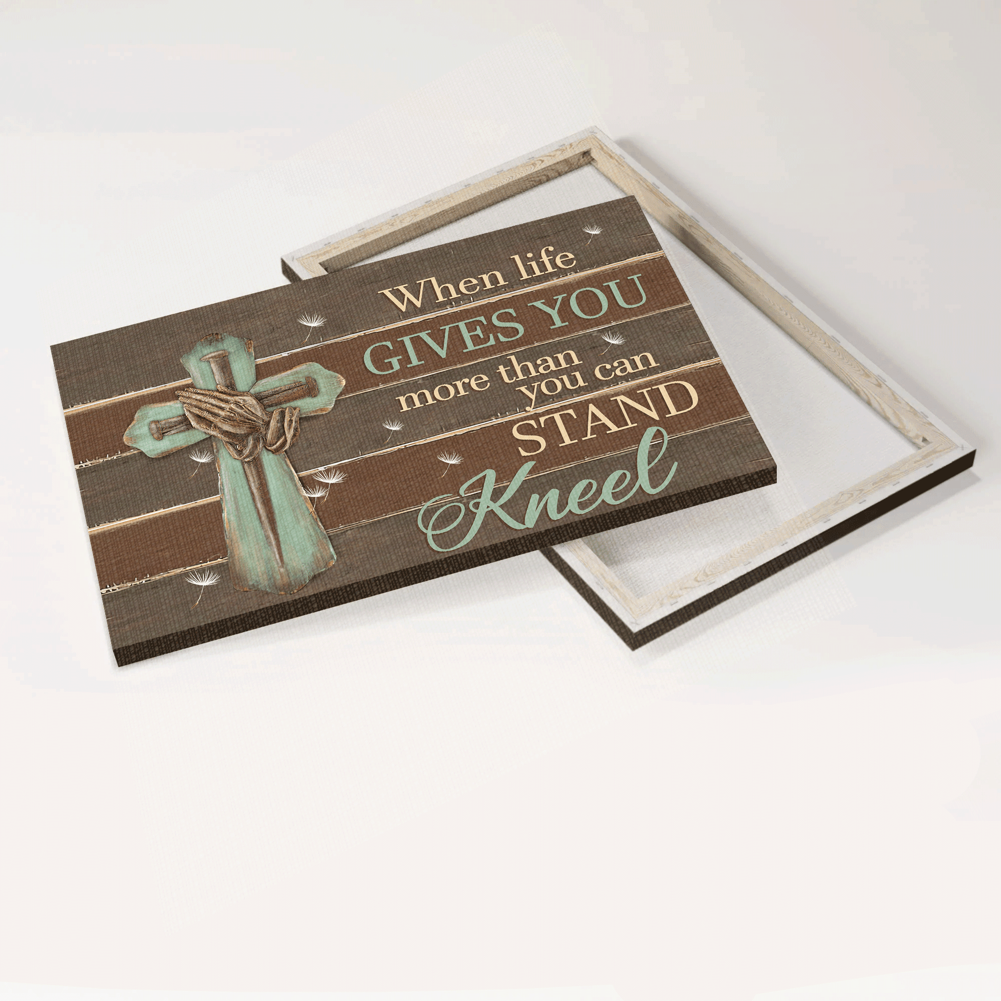 Jesus Landscape Canvas - Praying hand, Wooden cross Canvas - Gift for Christian - When life gives you more than you can stand kneel Landscape Canvas