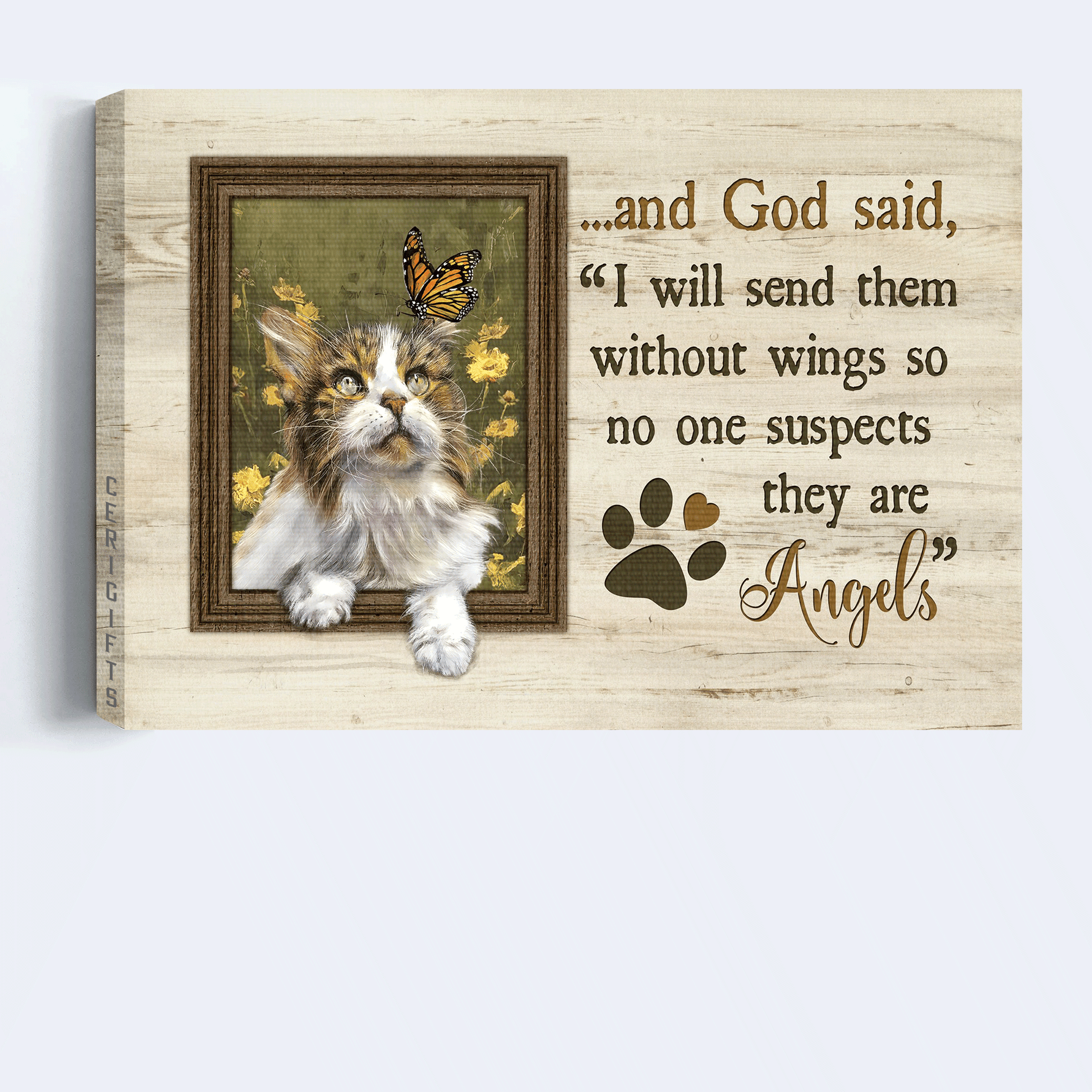 Jesus Landscape Canvas - Pretty cat, Yellow flower field, Small window Canvas - Gift for Christian, Pet Lovers - I will send them without wings Landscape Canvas