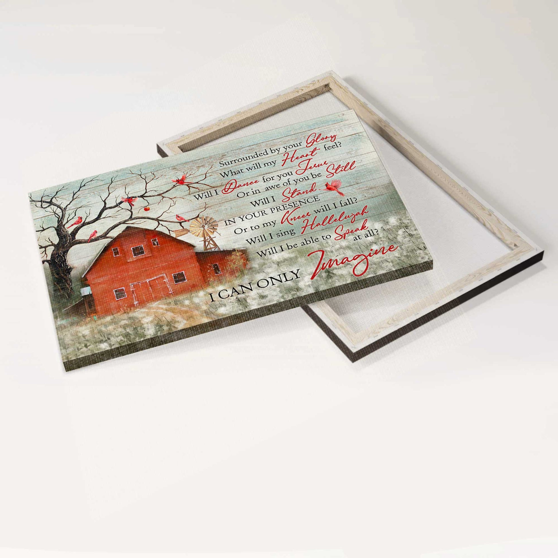 With serene scenes of a red barn house on a beautiful daisy flower field, stunning red cardinal and meaningful lyrics, this wall art will make your house brighter and delightful. This amazing Jesus Landscape Canvas- Red barn, Field of dandelion, Cardinal drawing- Gift for Christian- I can only imagine - Landscape Canvas Prints, Christian Wall Art is also a perfect gift for your friend, your lover, and even your family.