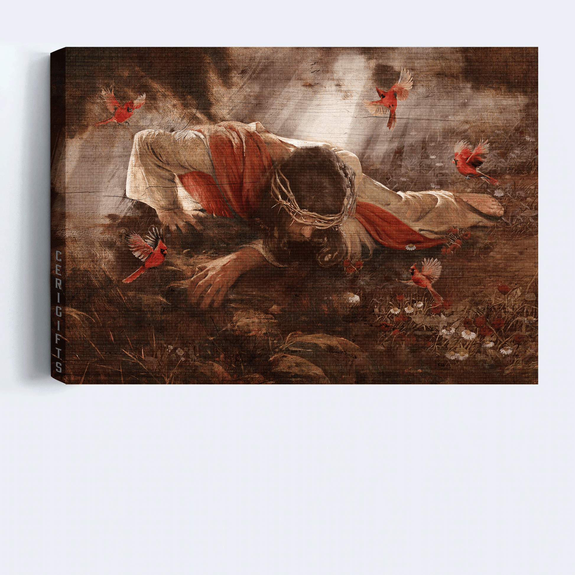 Jesus Landscape Canvas - Red cardinal, Jesus painting, Daisy flower, Crown of thorns, In the darkness Landscape Canvas - Gift For Christian Canvas Prints, Christian Wall Art