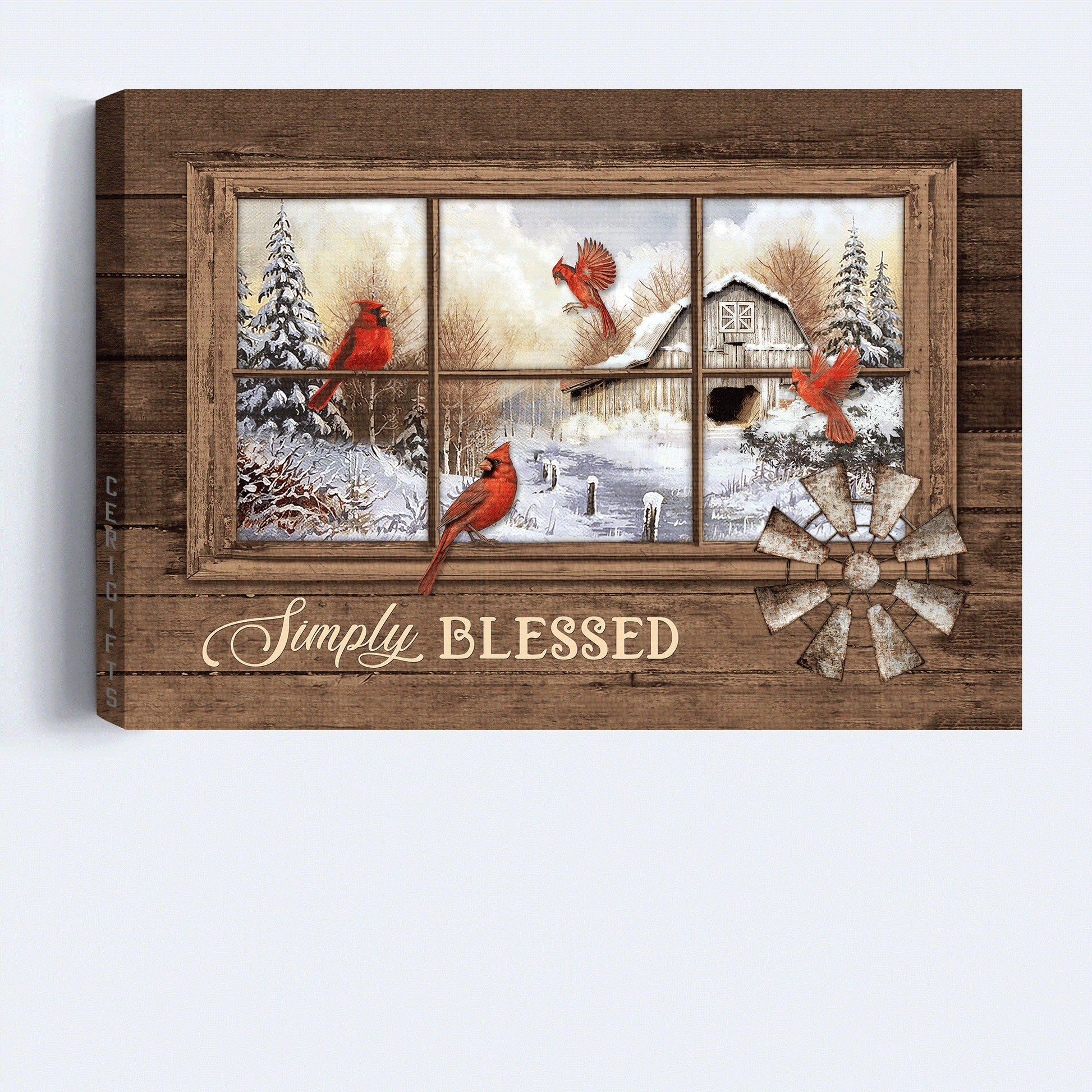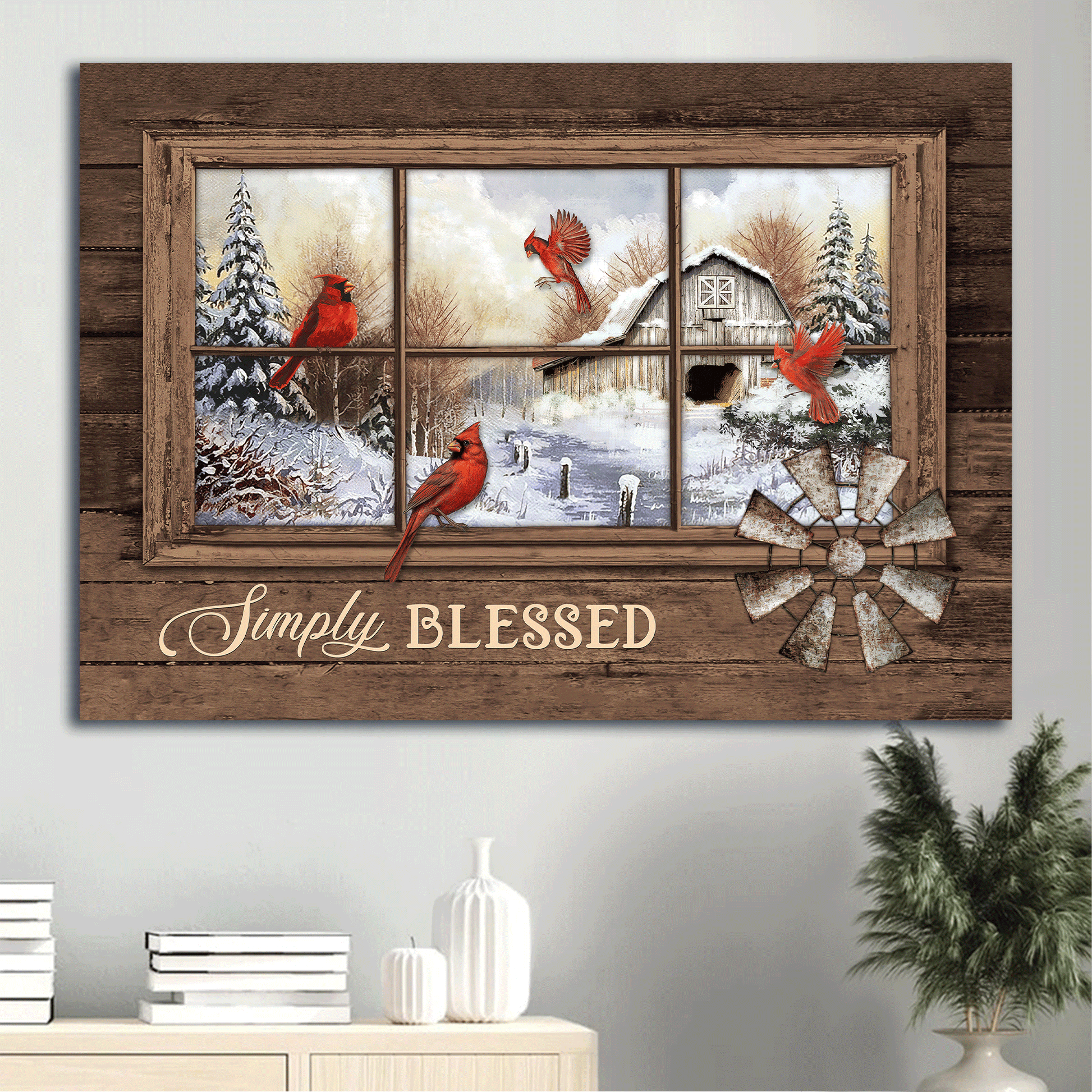 Jesus Landscape Canvas - Red cardinal, White snow, Beautiful day, Windmill, Simply blessed Landscape Canvas - Gift For Christian Canvas Prints, Christian Wall Art