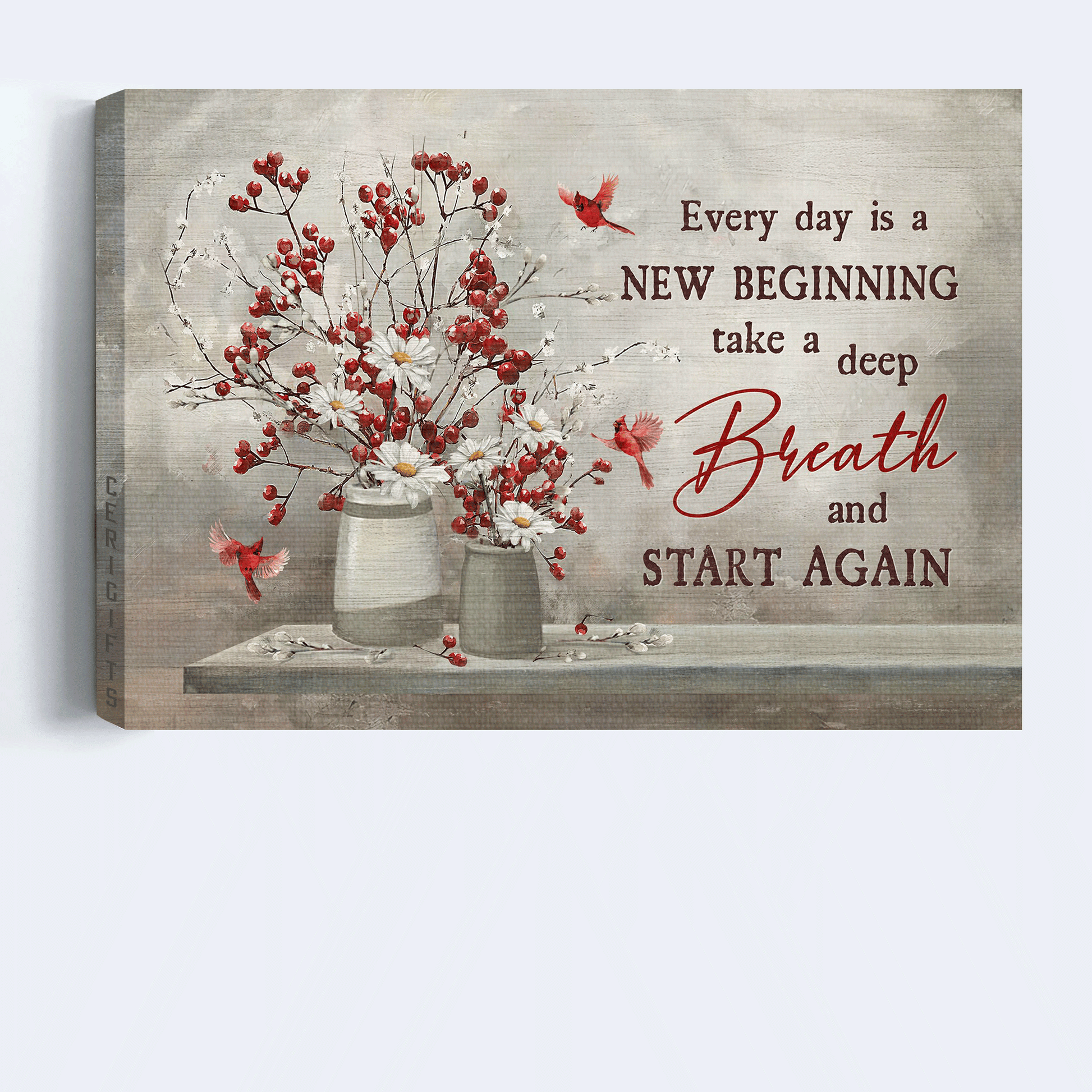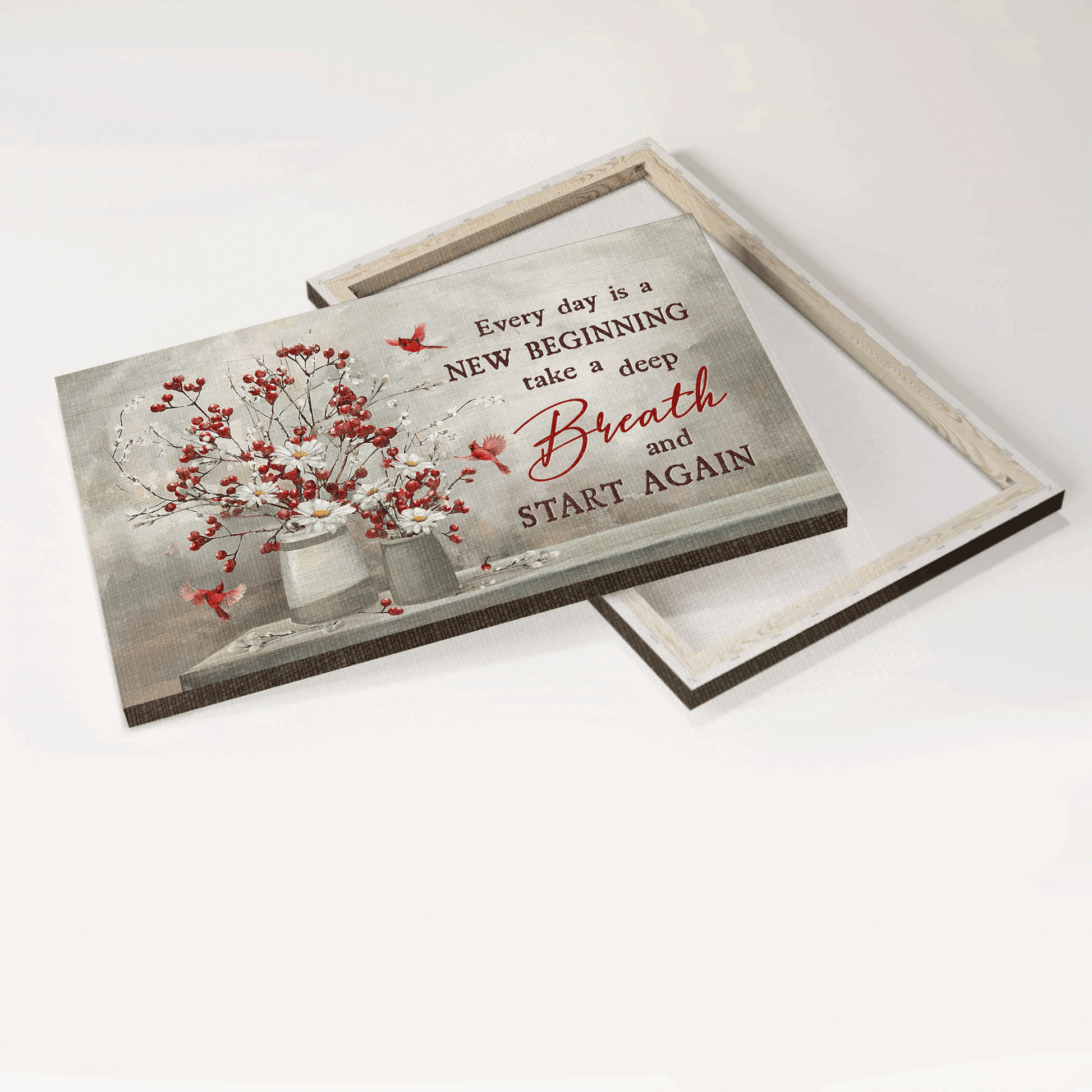 Jesus Landscape Canvas - Red cranberry, Daisy flower, Cardinal, Every day is a new beginning Landscape Canvas - Gift For Christian Canvas Prints, Christian Wall Art
