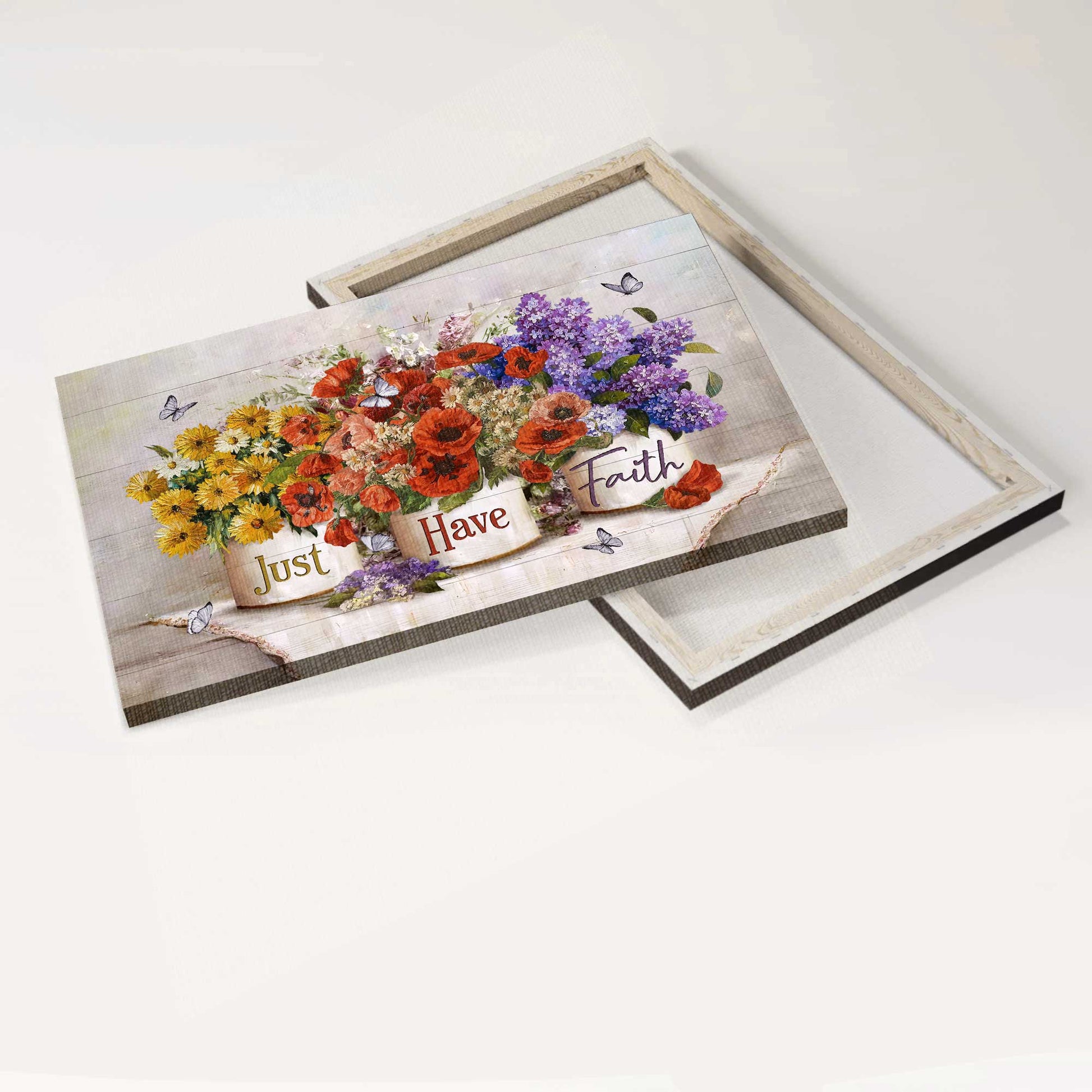 Jesus Landscape Canvas- Red poppy, Colorful flower, Purple butterfly- Gift for Christian- Just have faith - Landscape Canvas Prints, Christian Wall Art