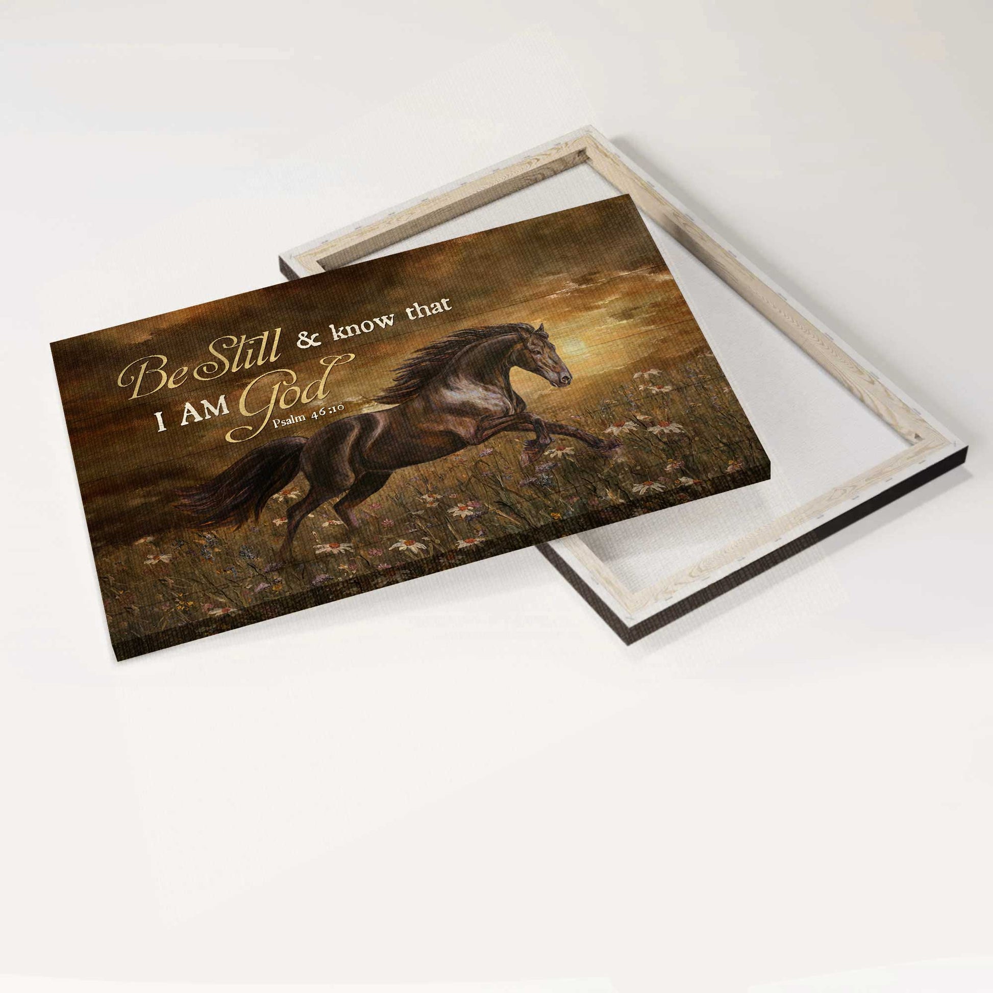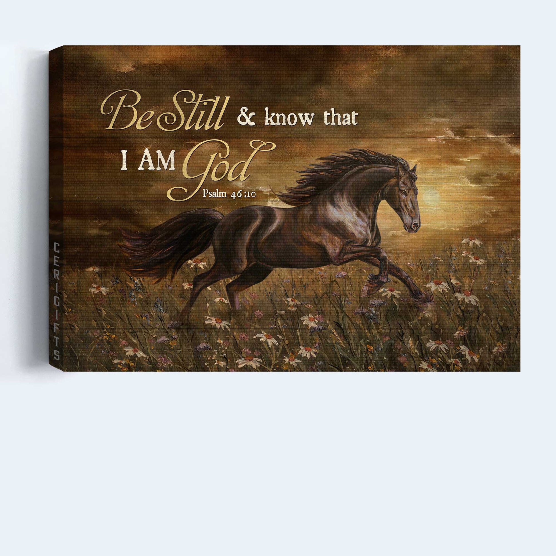 Jesus Landscape Canvas- Running horse, Daisy field, Dark cloud- Gift for Christian- Be still and know that I am God - Landscape Canvas Prints, Christian Wall Art.