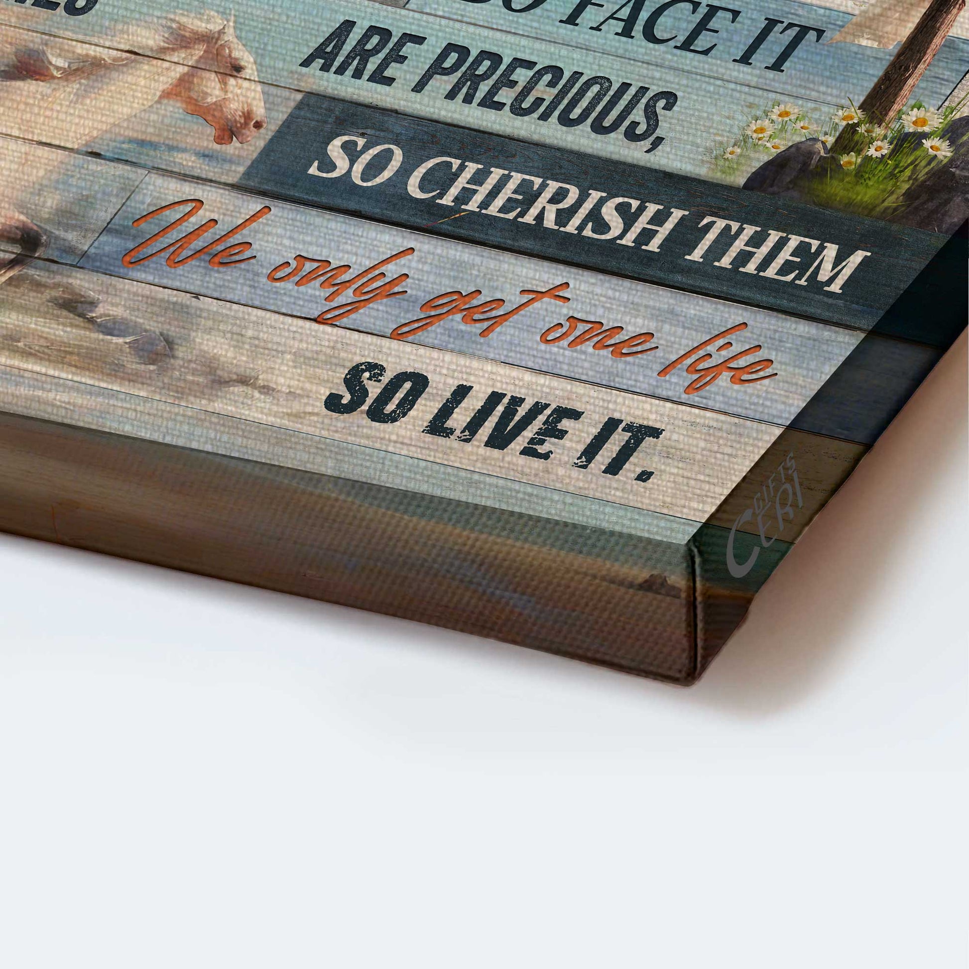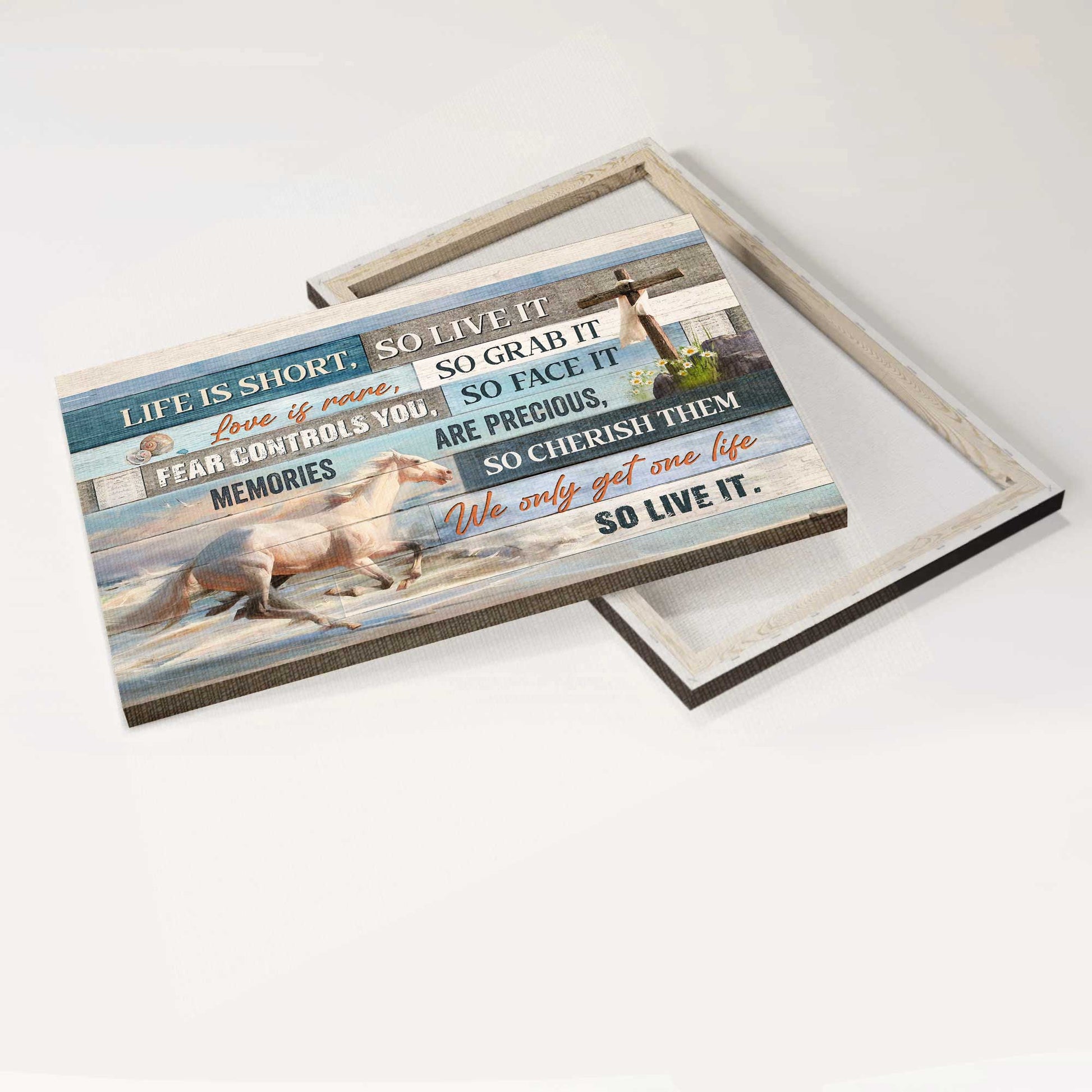 Jesus Landscape Canvas- Running horse, Wooden Cross- Gift for Christian- We only get one life so live it - Landscape Canvas Prints, Wall Art