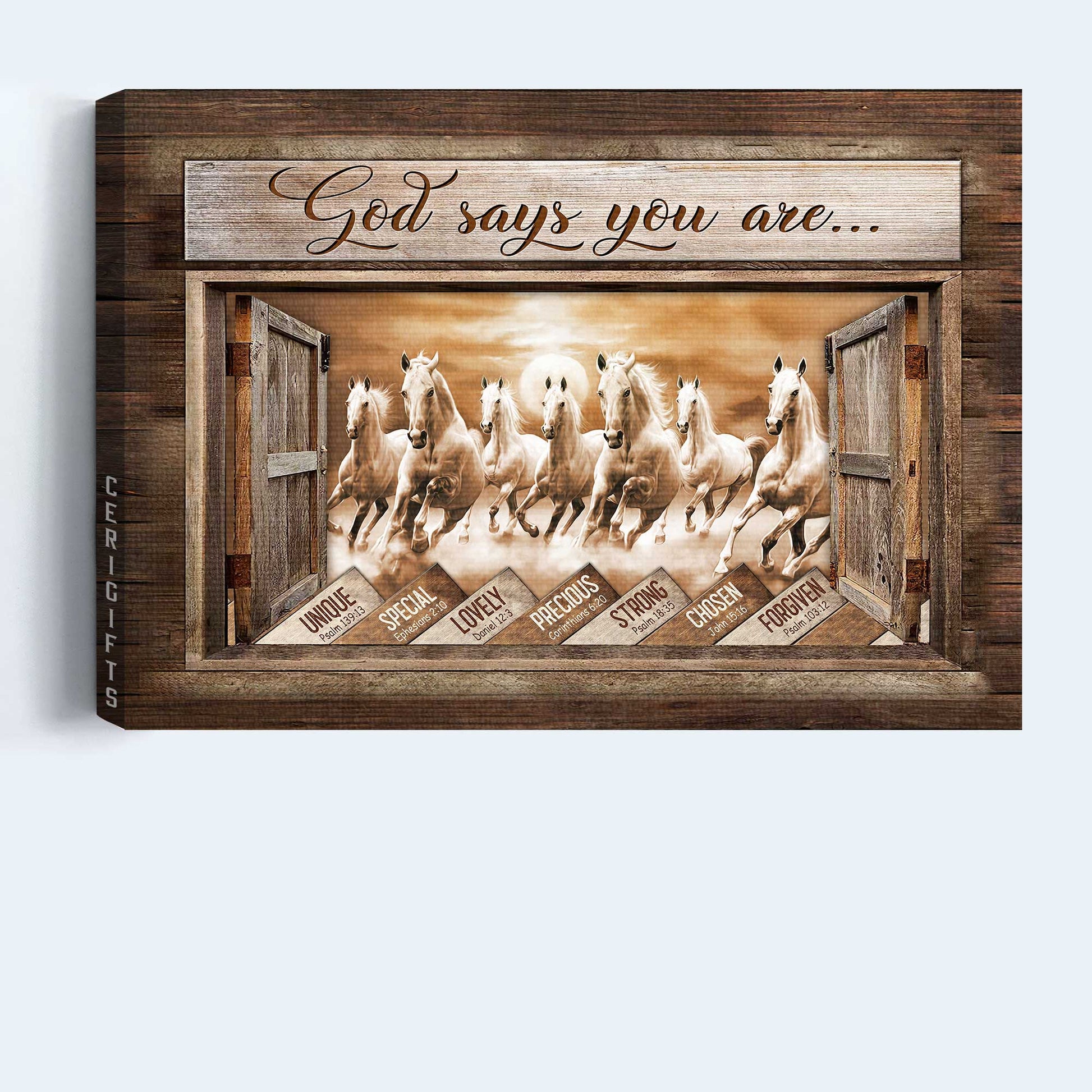 Jesus Landscape Canvas- Running horses, Seven white horses, God says you are canvas- Gift for Christian - Landscape Canvas Prints, Christian Wall Art