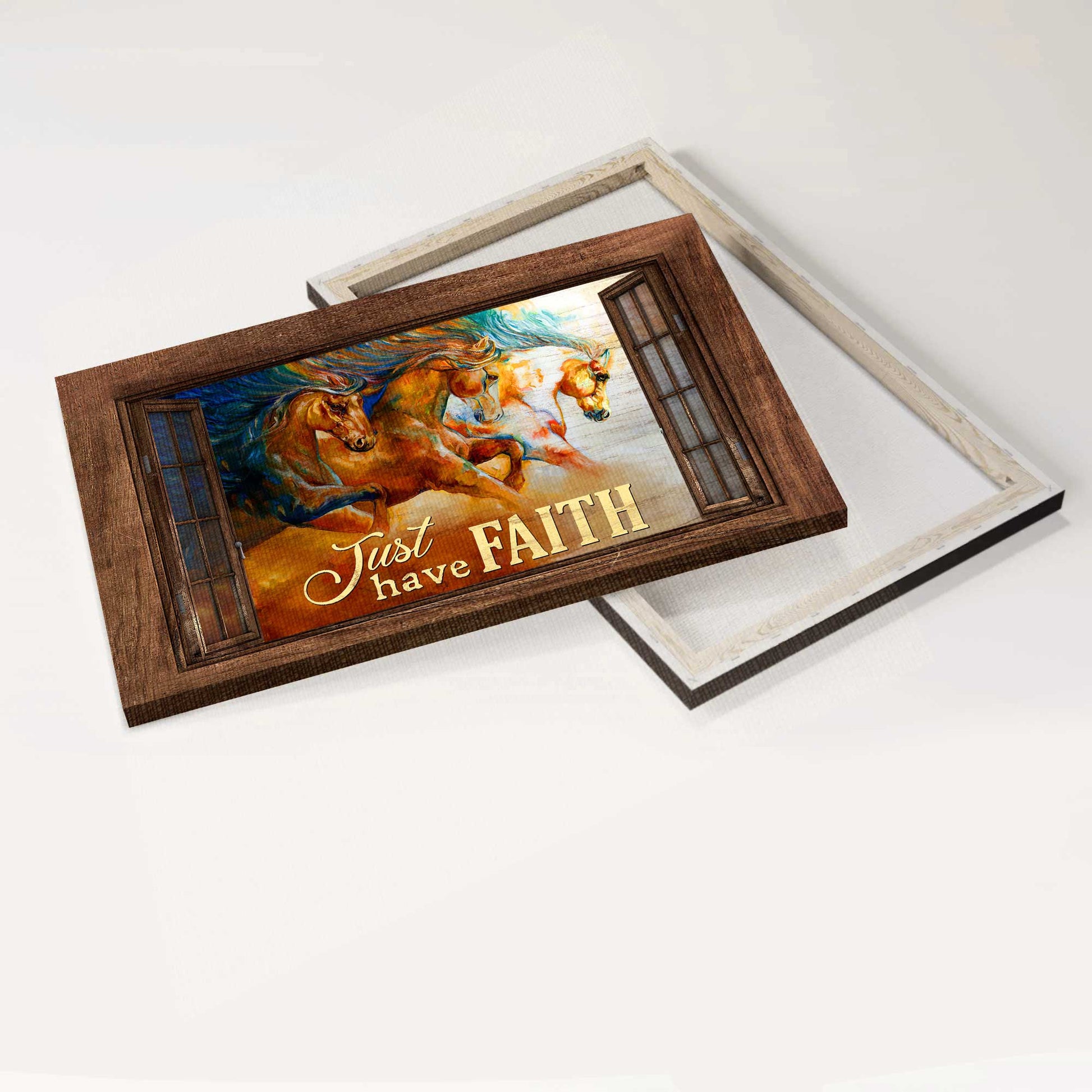 Jesus Landscape Canvas- Running horses, Watercolor painting, Wooden window, Just have faith- Gift for Christian - Landscape Canvas Prints, Christian Wall Art