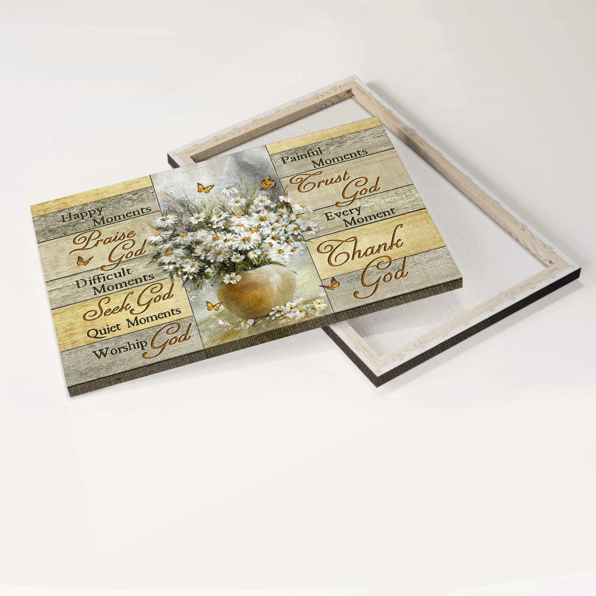 Jesus Landscape Canvas- Rustic daisy flower, Monarch butterfly, Flower painting, Every moment, thank God - Gift for Christian- Landscape Canvas Prints, Home Decor Wall Art