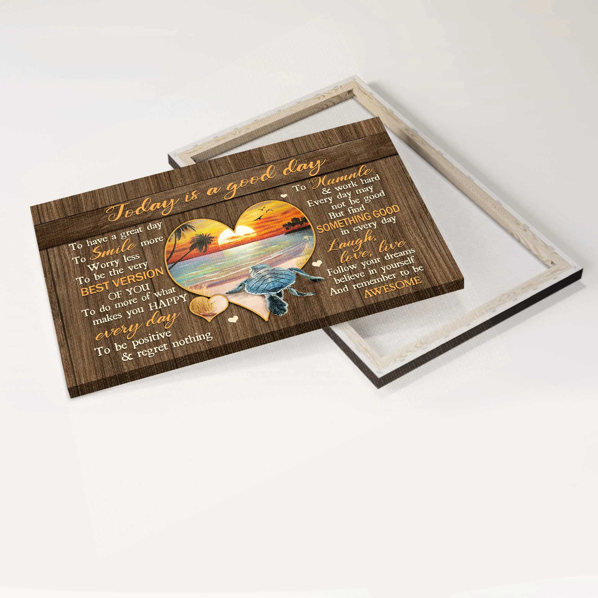 With gorgeous sea turtle, heart-shaped, sunset on the beach scene and inspiring quote “Today is a good day, remember to be awesome”, this Jesus Landscape Canvas- Sea turtle, Heart shaped, Sunset on the beach- Gift for Christian- Today is a good day, Remember to be awesome - Family Landscape Canvas Prints, Wall Art add more color to your home. This amazing canvas is an ideal gift not only for your friend but also for your lover and especially your family.