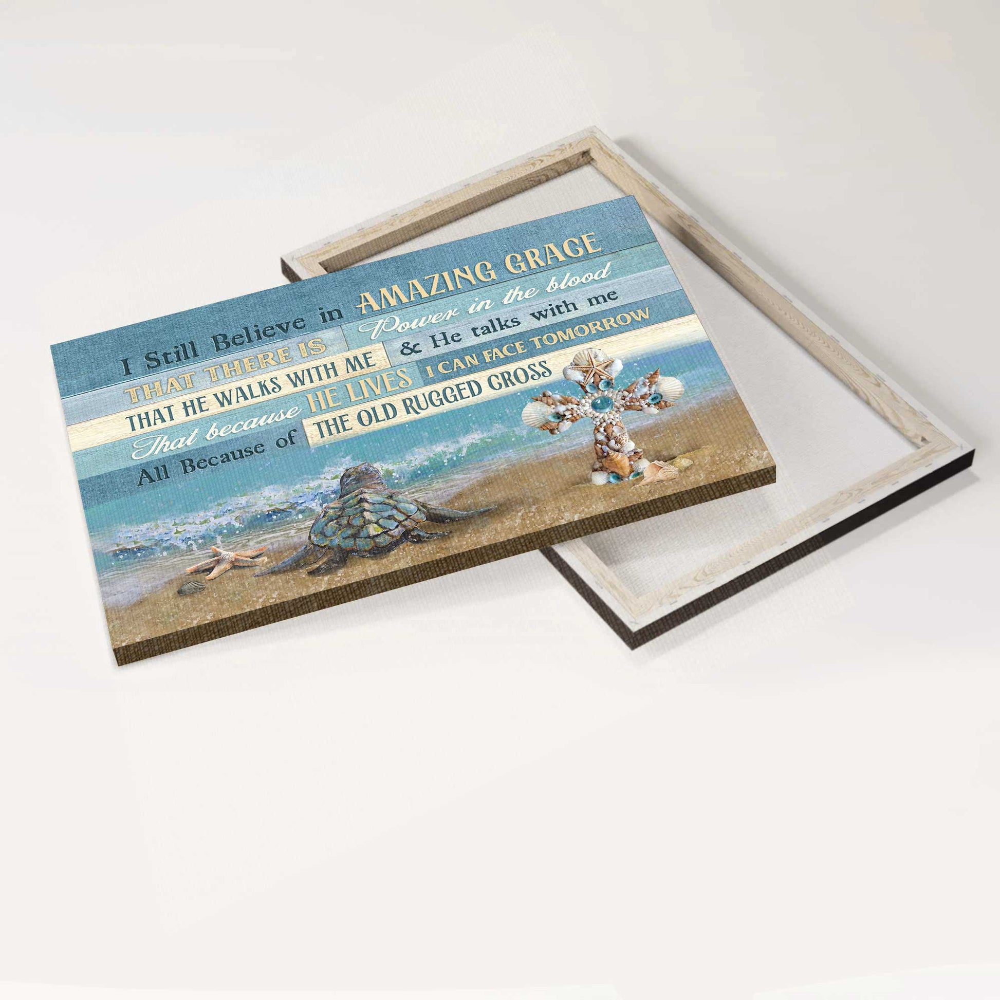 Jesus Landscape Canvas- Sea turtle, Ocean painting, Unique cross- Gift for Christian- I still believe in amazing grace - Landscape Canvas Prints, Christian Wall Art