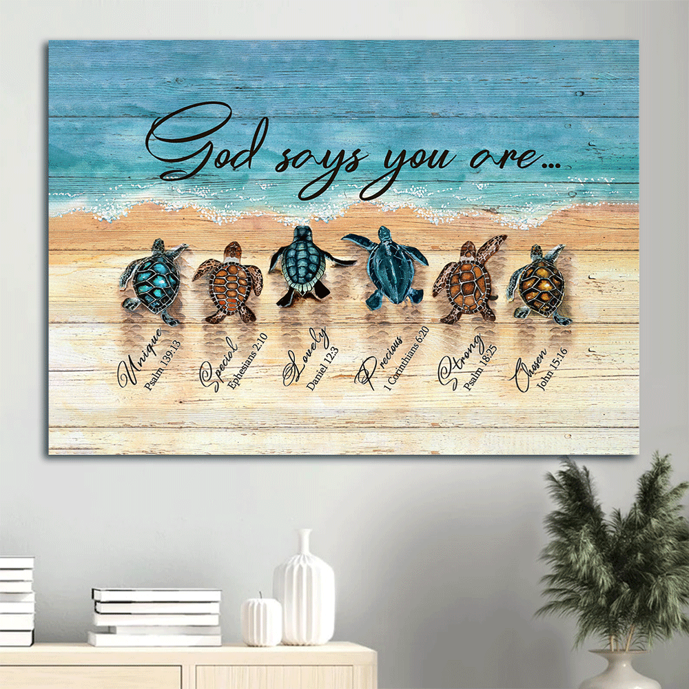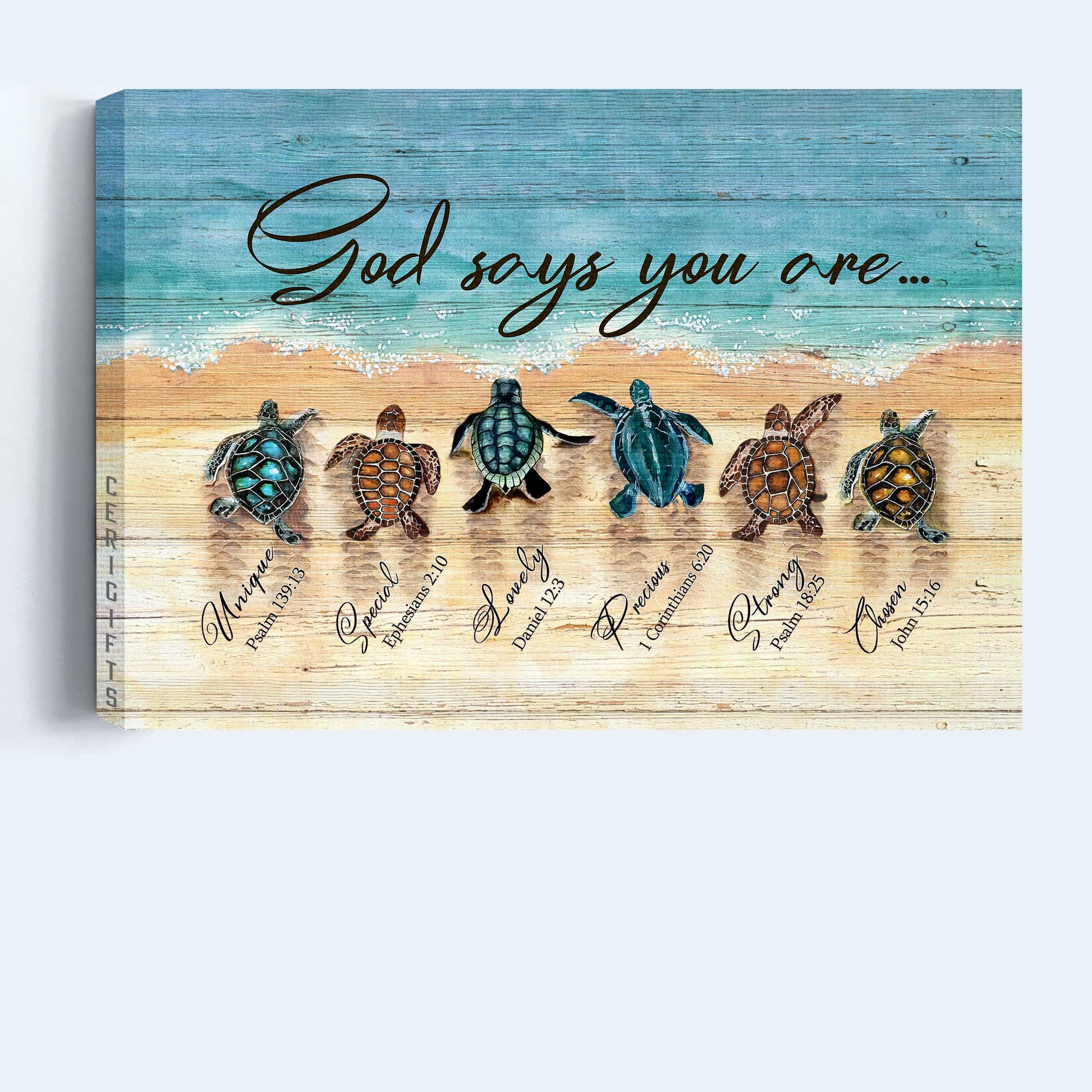 Let’s hang Jesus Landscape Canvas- Sea turtle, Sand beach painting, God says you are- Gift for Christian - Landscape Canvas Prints, Wall Art on your walls in the kitchen, bedroom, bathroom, and living room and enjoy it now!