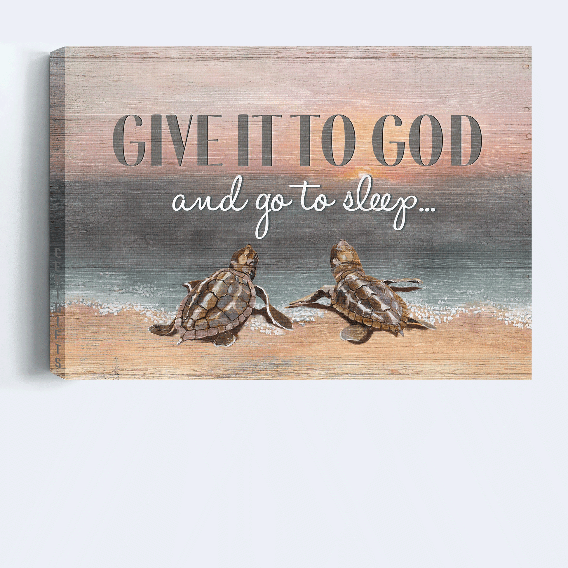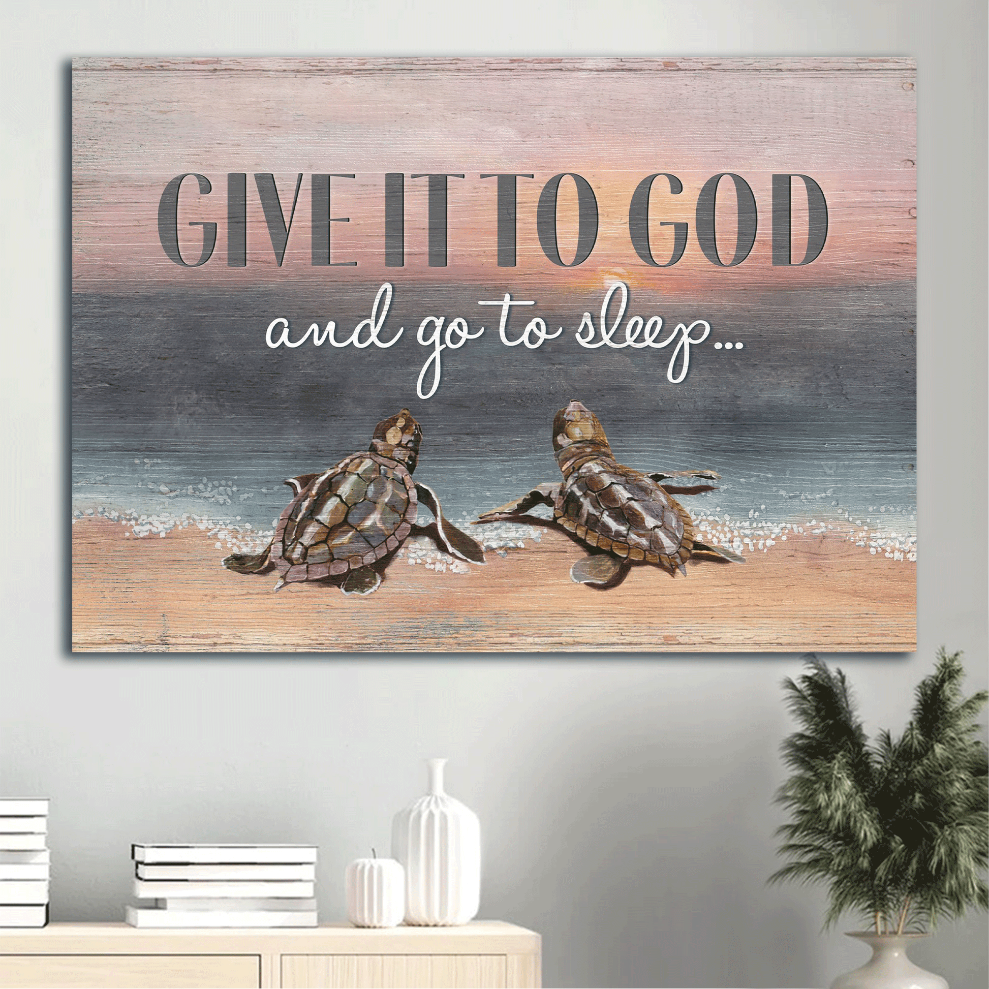 Jesus Landscape Canvas - Seaturtle Painting, On The Beach Landscape Canvas - Inspirational Gift, Gift For Religious Christian - Give It To God And Go To Sleep