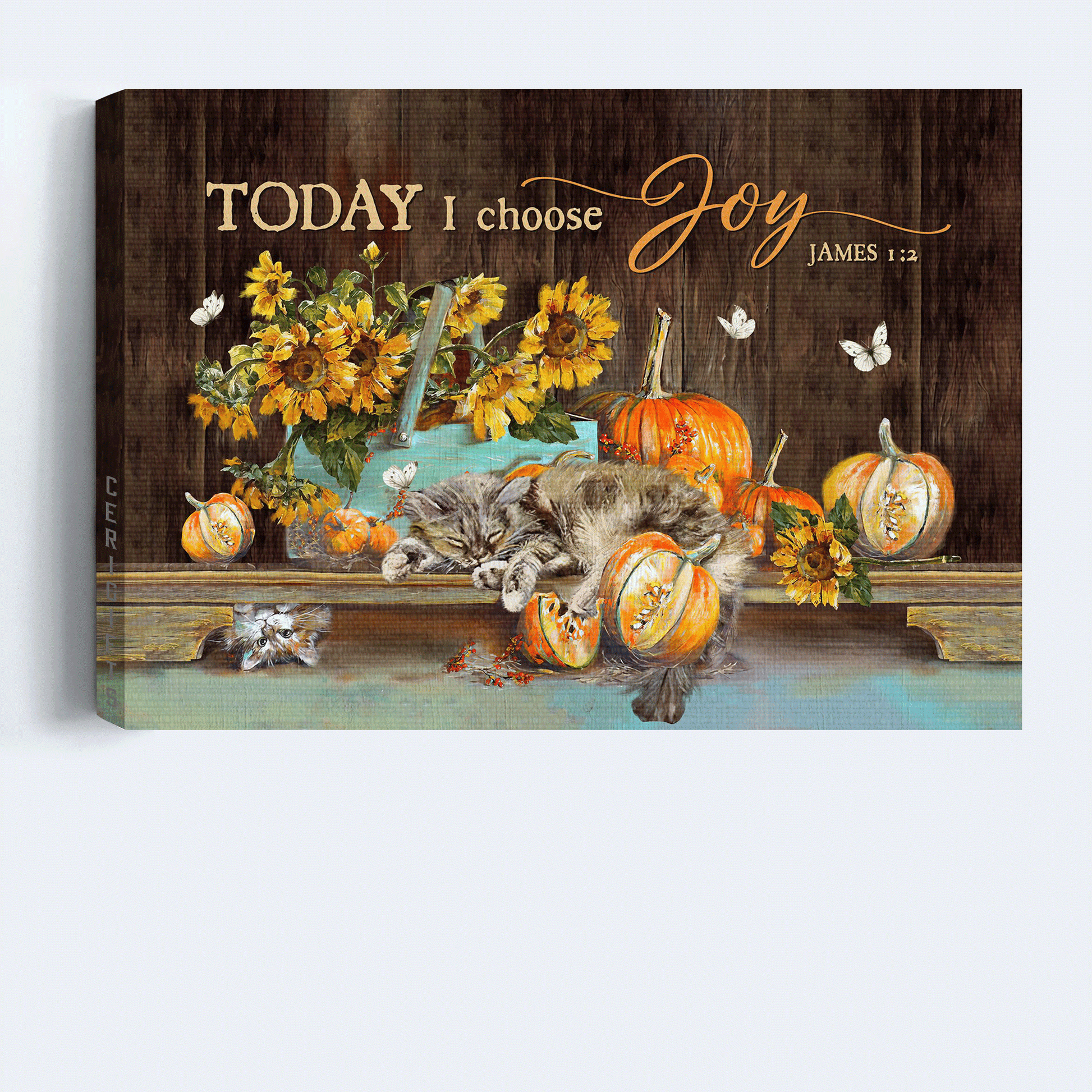 Jesus Landscape Canvas - Sleeping cat, Watercolor pumpkin, Sunflower drawing, Today I choose joy canvas- Gift for Christian , cat lover - Landscape Canvas Prints, Christian Wall Art.