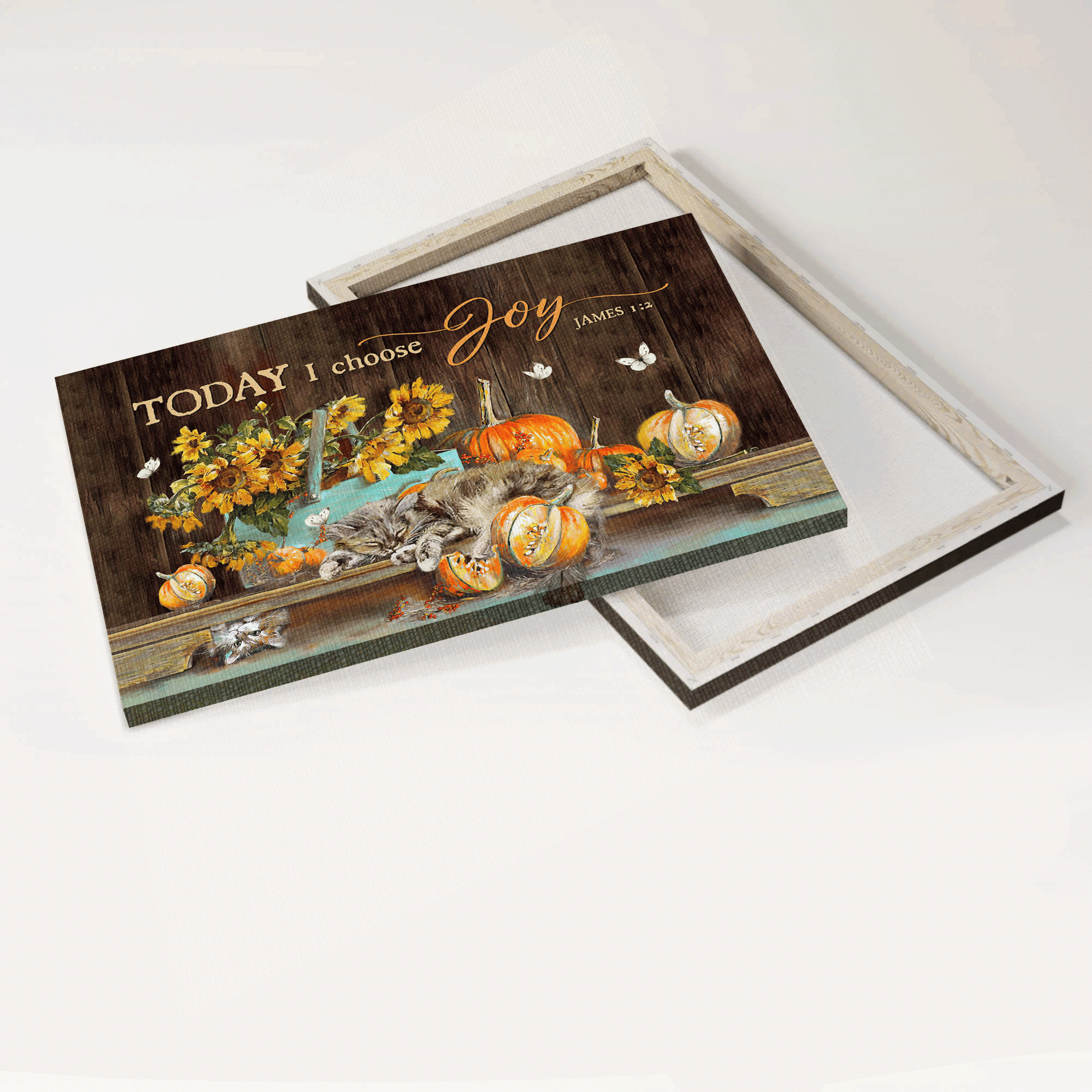 Jesus Landscape Canvas - Sleeping cat, Watercolor pumpkin, Sunflower drawing, Today I choose joy canvas- Gift for Christian , cat lover - Landscape Canvas Prints, Christian Wall Art