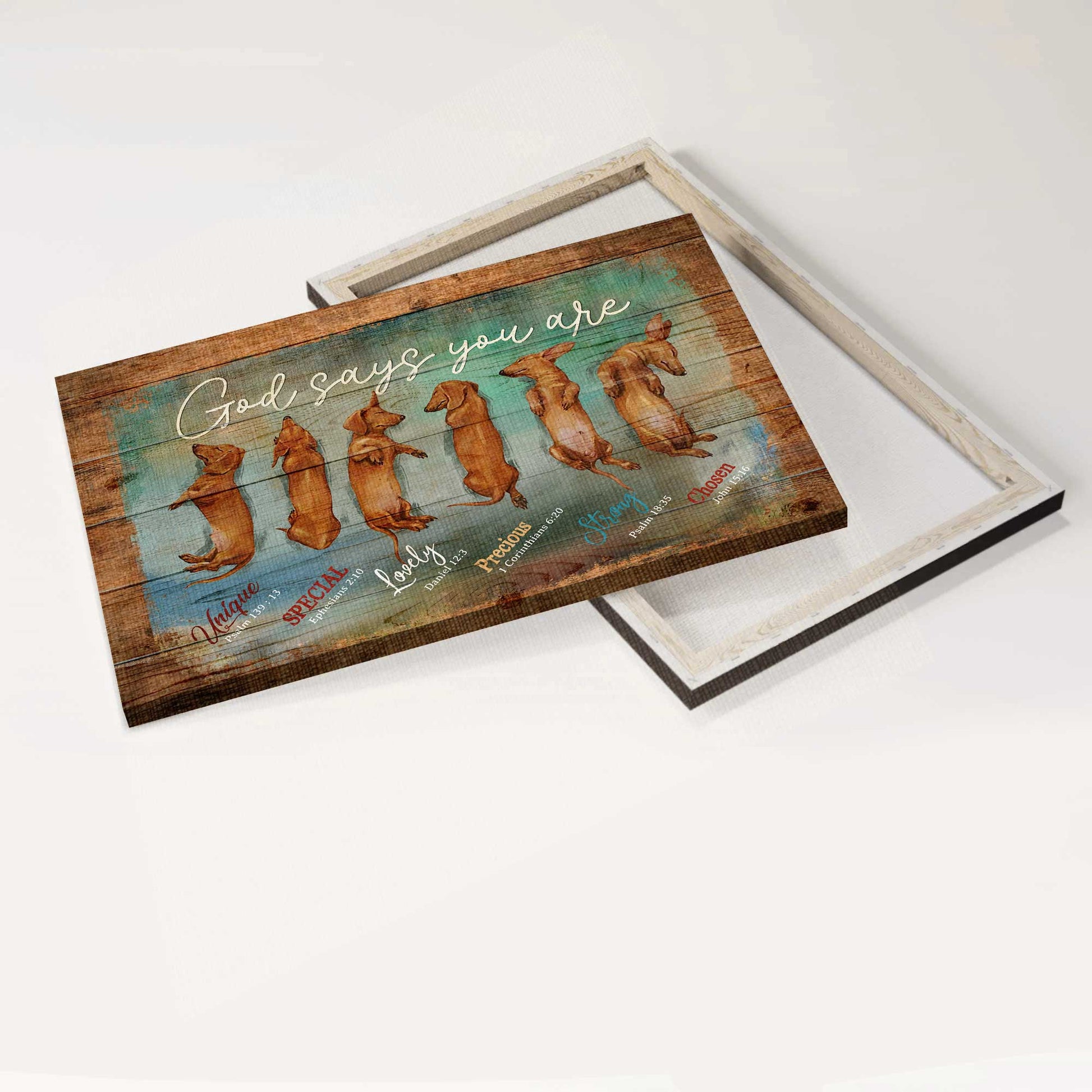 Jesus Landscape Canvas- Sleeping Dachshund, God says you are- Gift for Christian, Dog lover - Dachshund Landscape Canvas Prints, Wall Art.