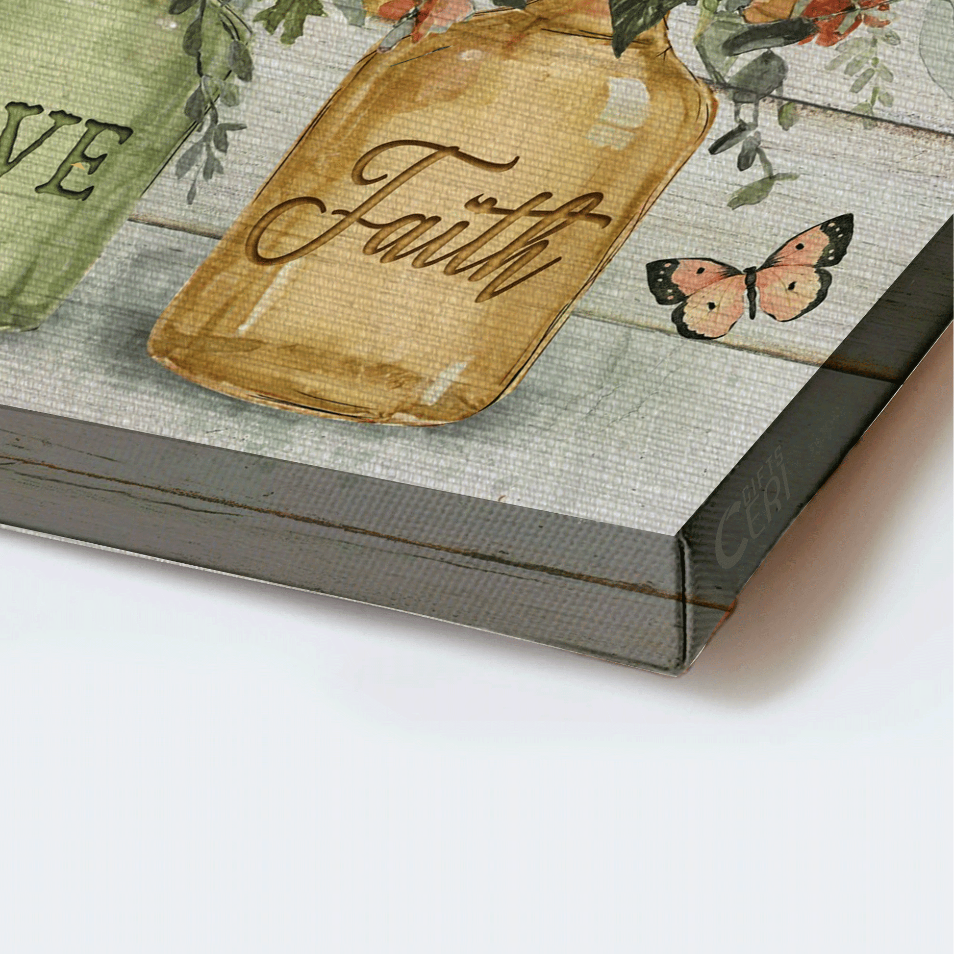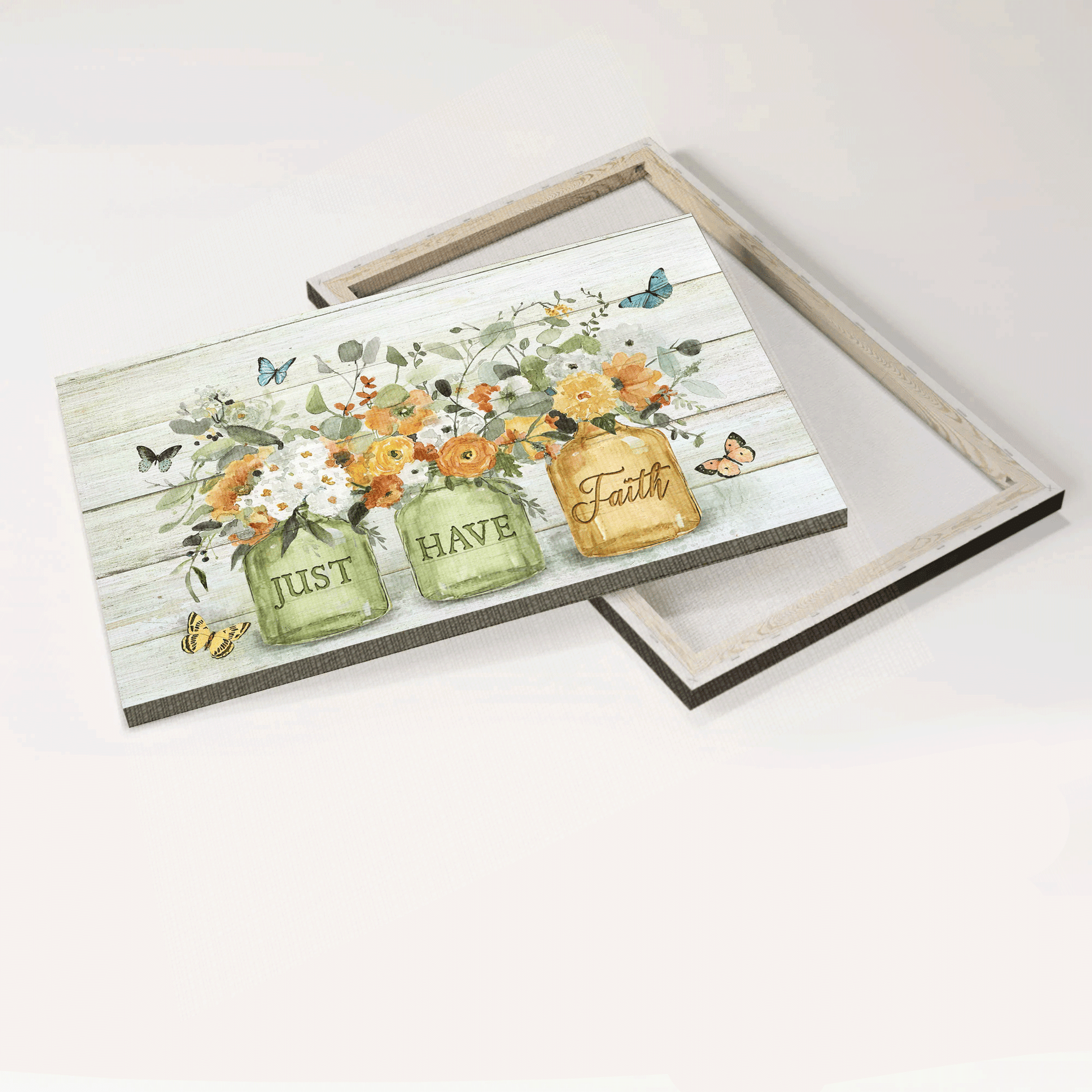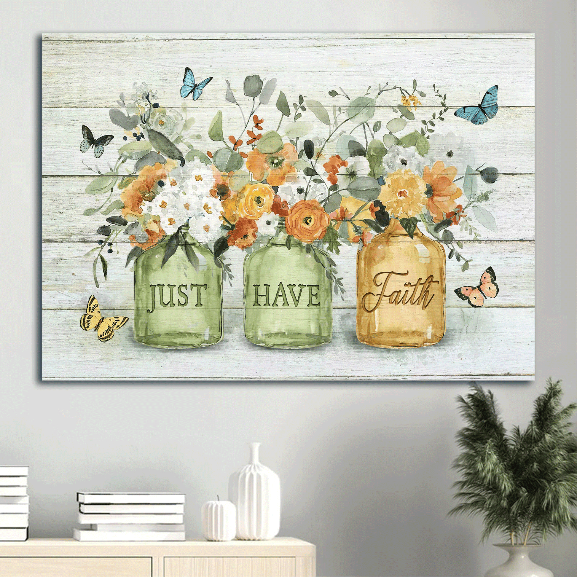 Jesus Landscape Canvas - Stunning Flower Jar Painting, Colorful Butterflies Canvas - Gift For Christian - Just Have Faith Canvas