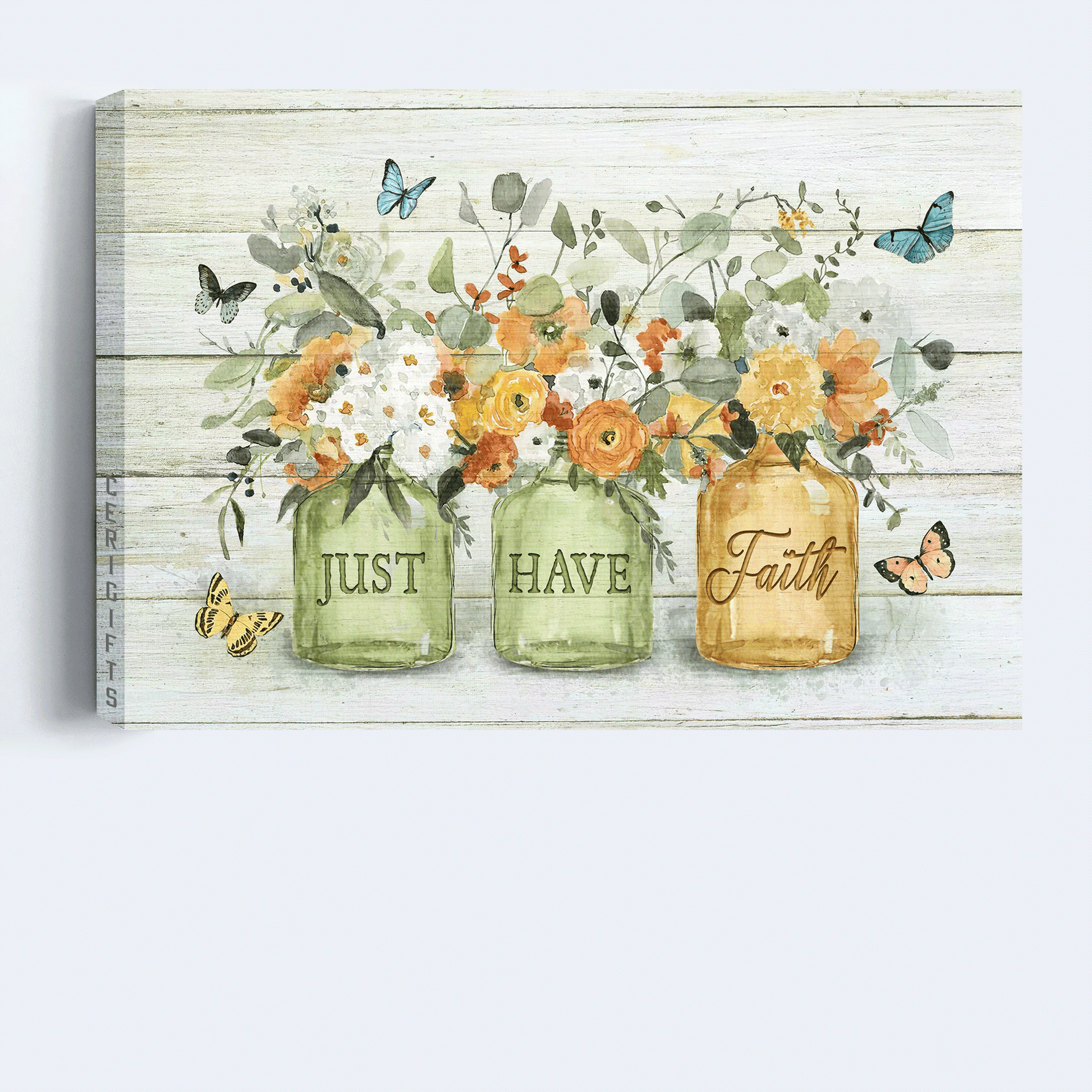 Do you want to add some joy to your living space? Then, this amazing Jesus Landscape Canvas - Stunning Flower Jar Painting, Colorful Butterflies Canvas - Gift For Christian - Just Have Faith Canvas Prints, Wall Art is the perfect option for you!