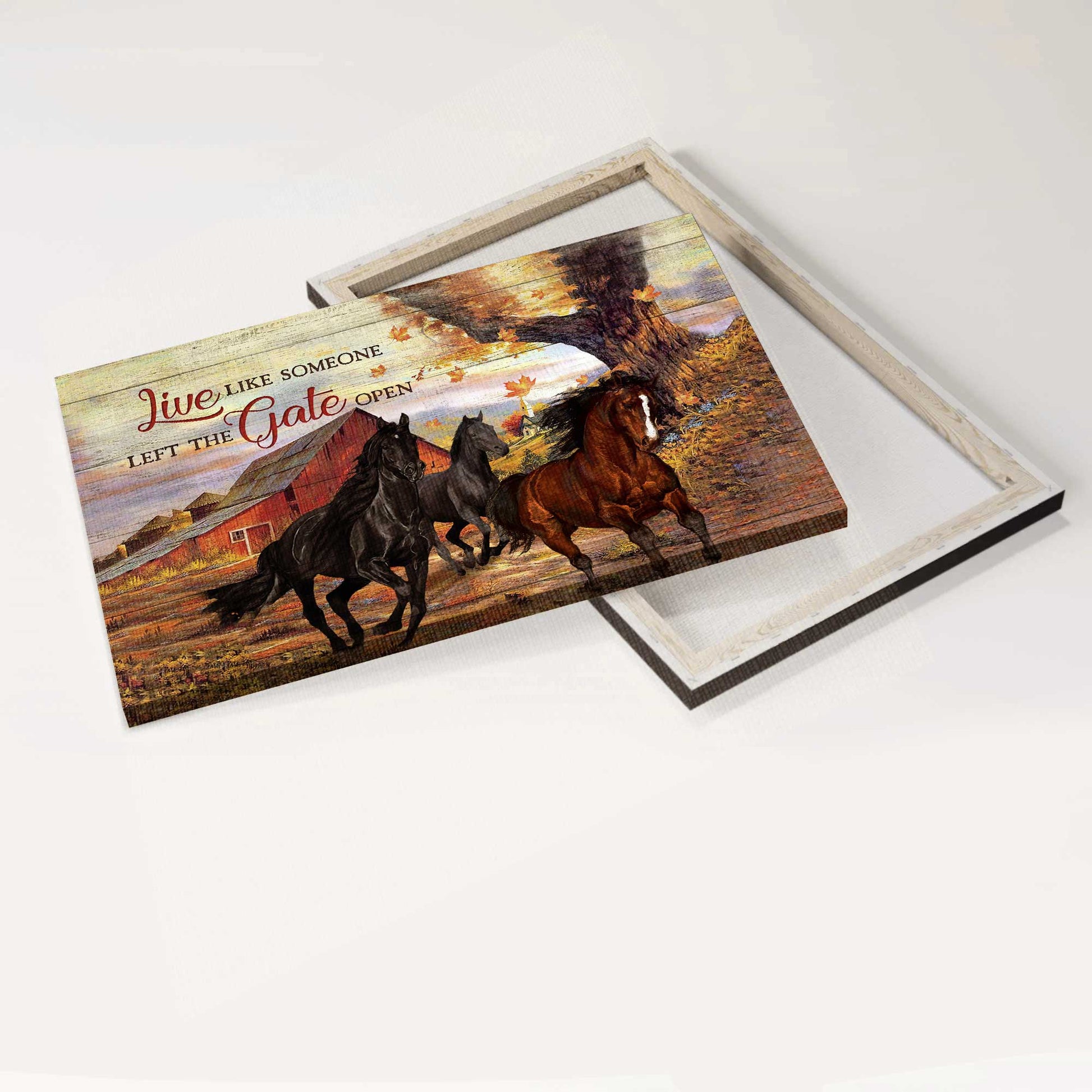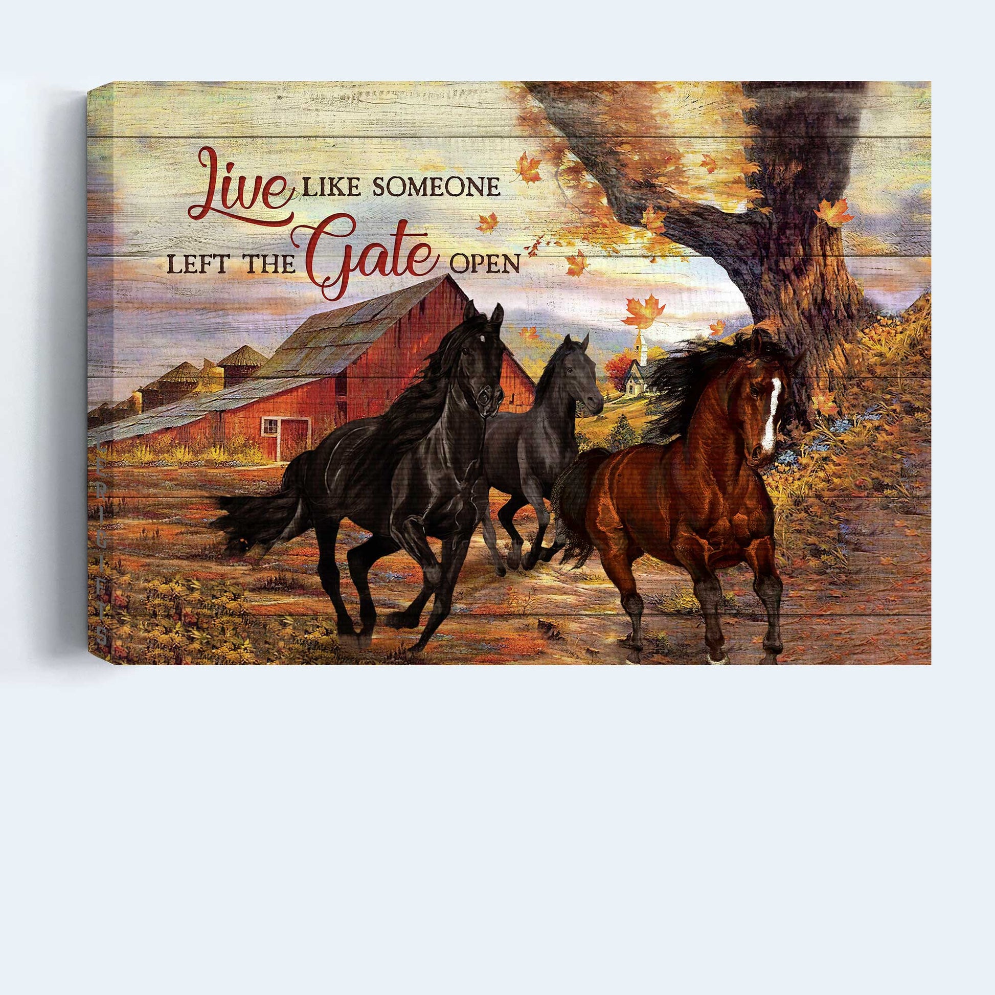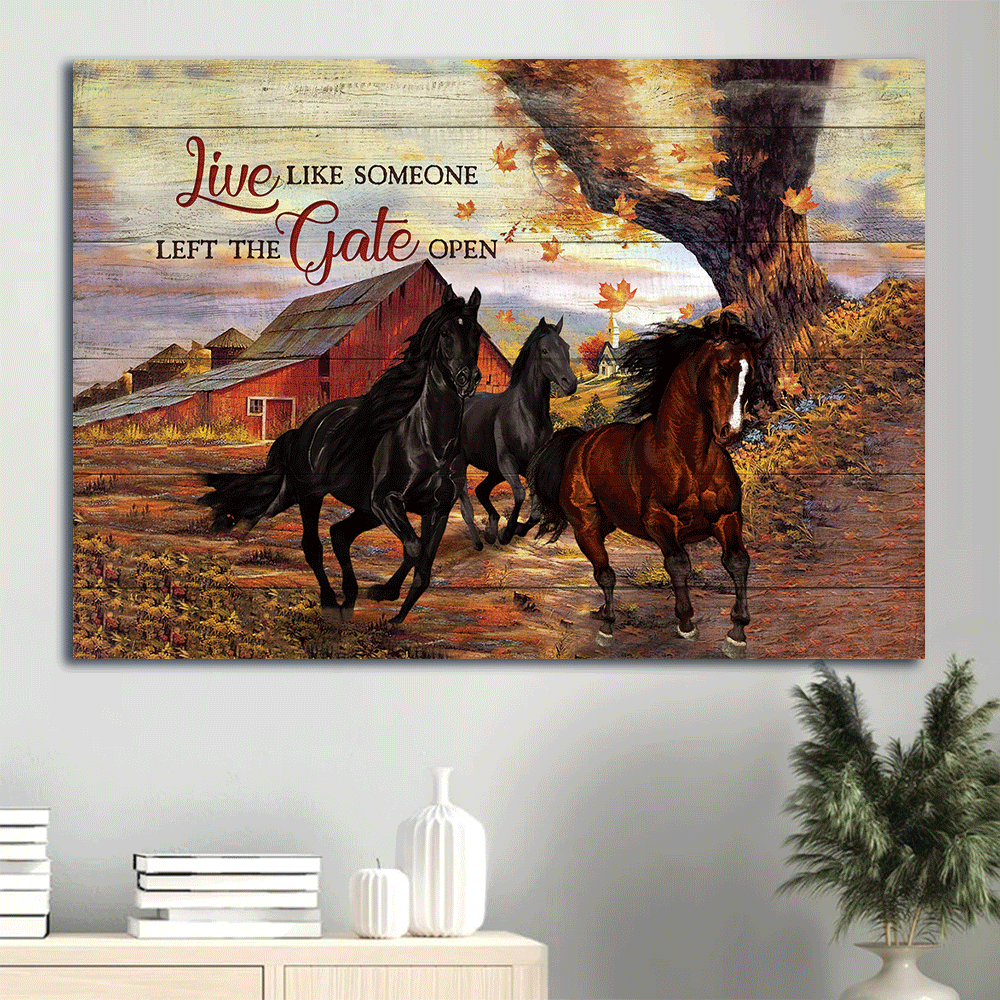 Jesus Landscape Canvas- Stunning horse, Farm, Autumn season- Gift for Christian - Live like someone left the gate open- Landscape Canvas Prints, Wall Art